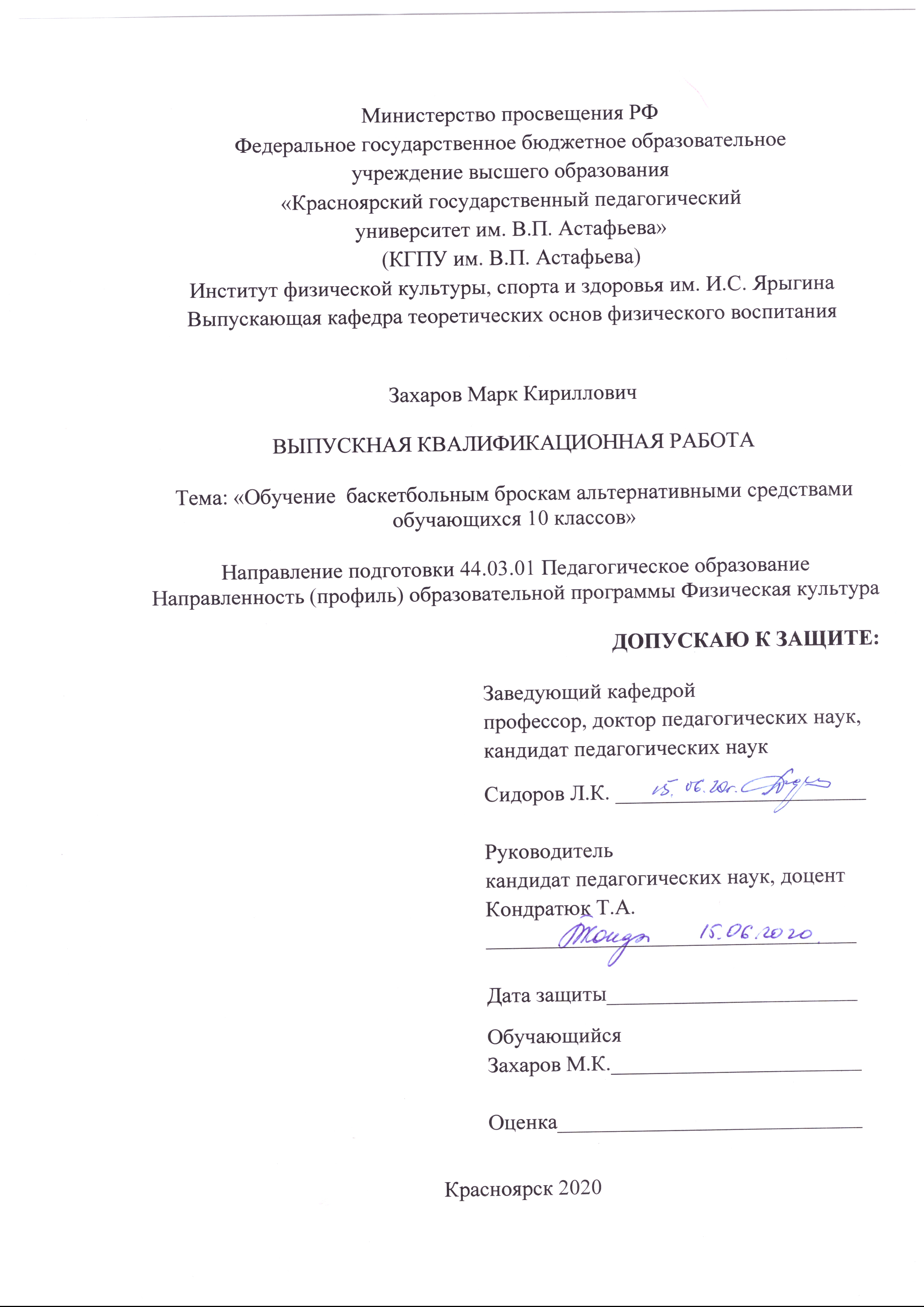 Обучение баскетбольным броскам альтернативными средствами обучающихся 10 классов