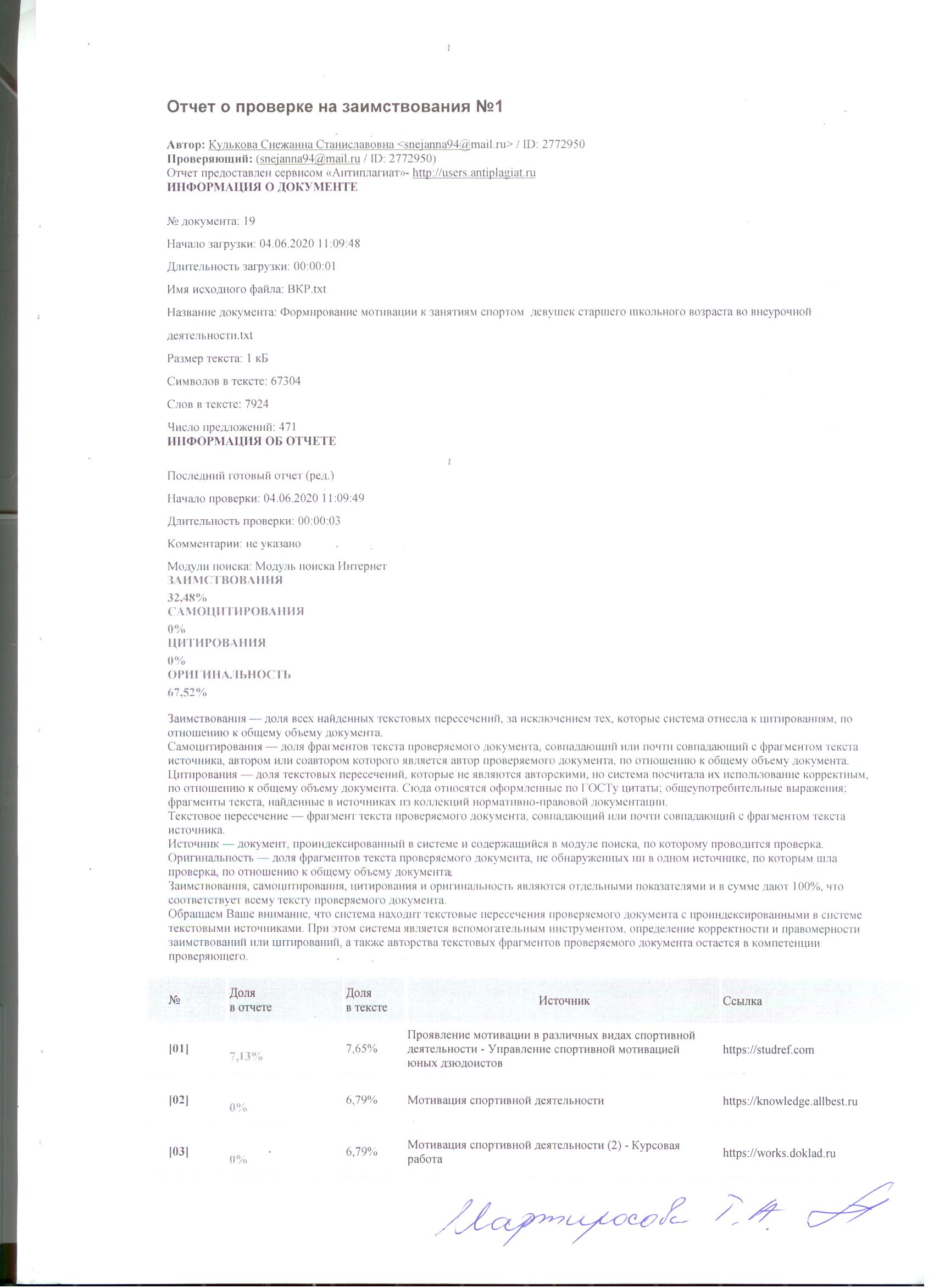 Формирование мотивации к занятиям спортом девушек старшего школьного возраста во внеурочной деятельности