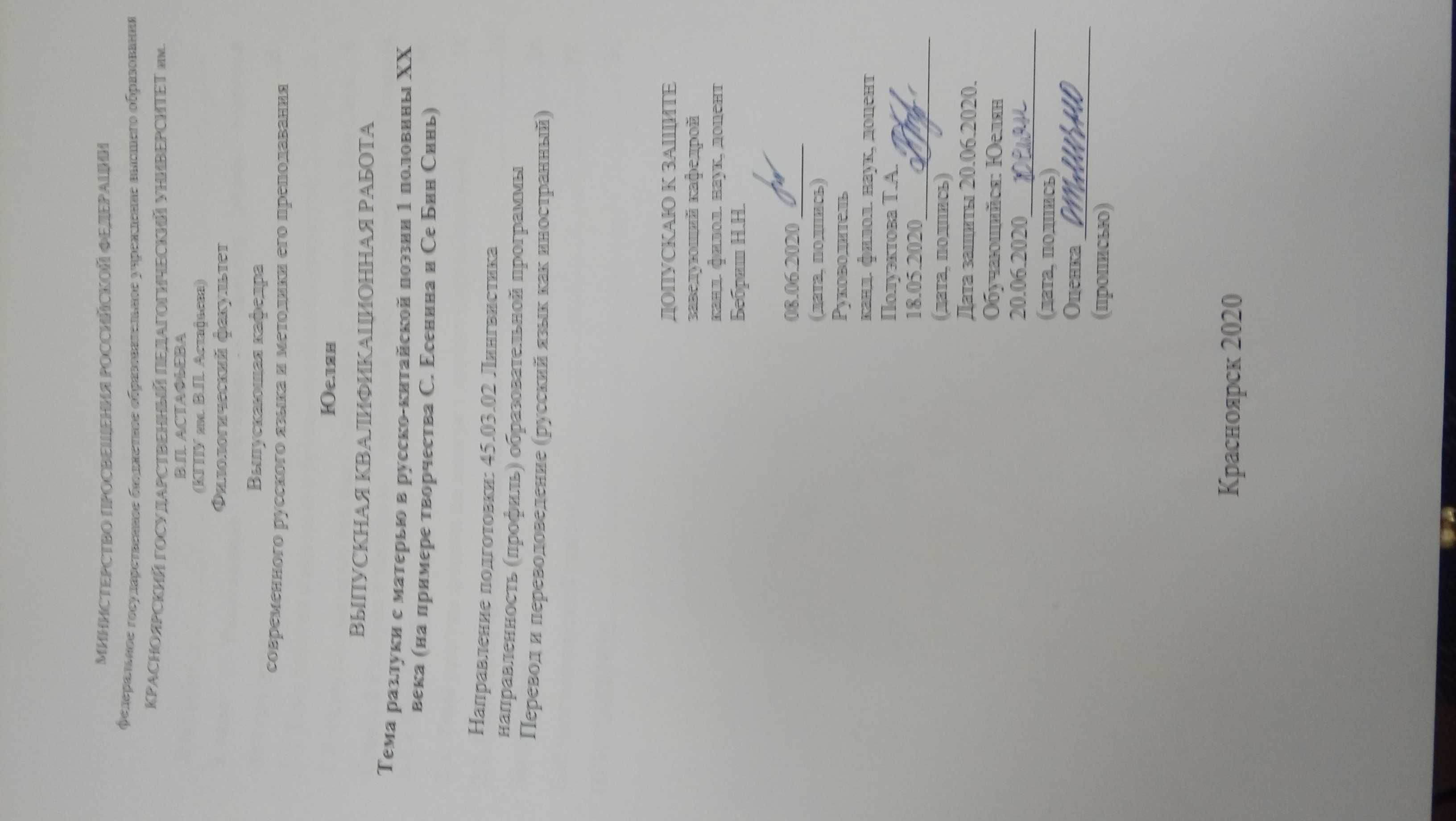 Тема разлуки с матерью в русско-китайской поэзии 1 половины XX века (на примере творчества С. Есенина и Се Бин Синь)