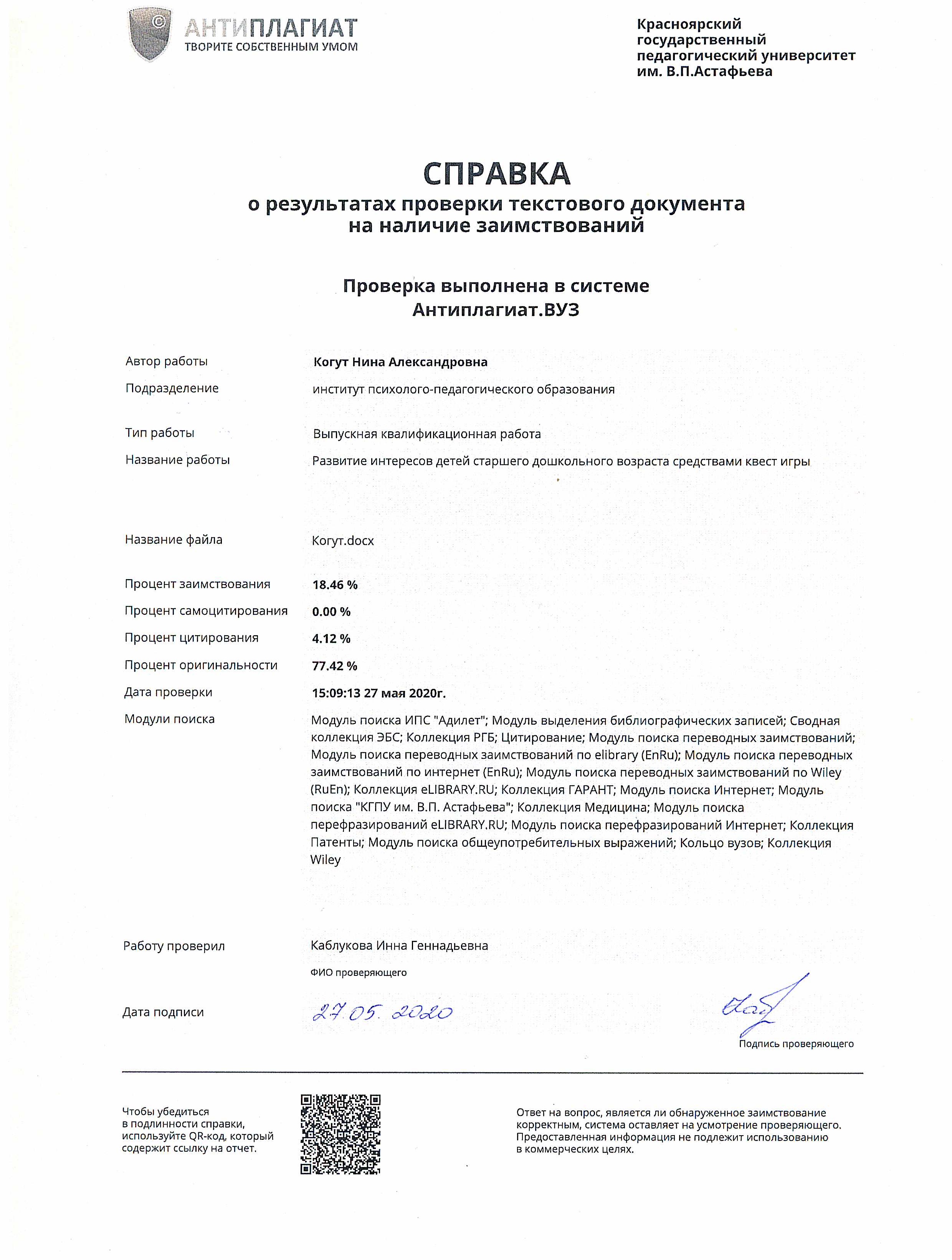 Когут Н.А. Развитие интересов детей старшего дошкольного возраста средствами квест-игры.