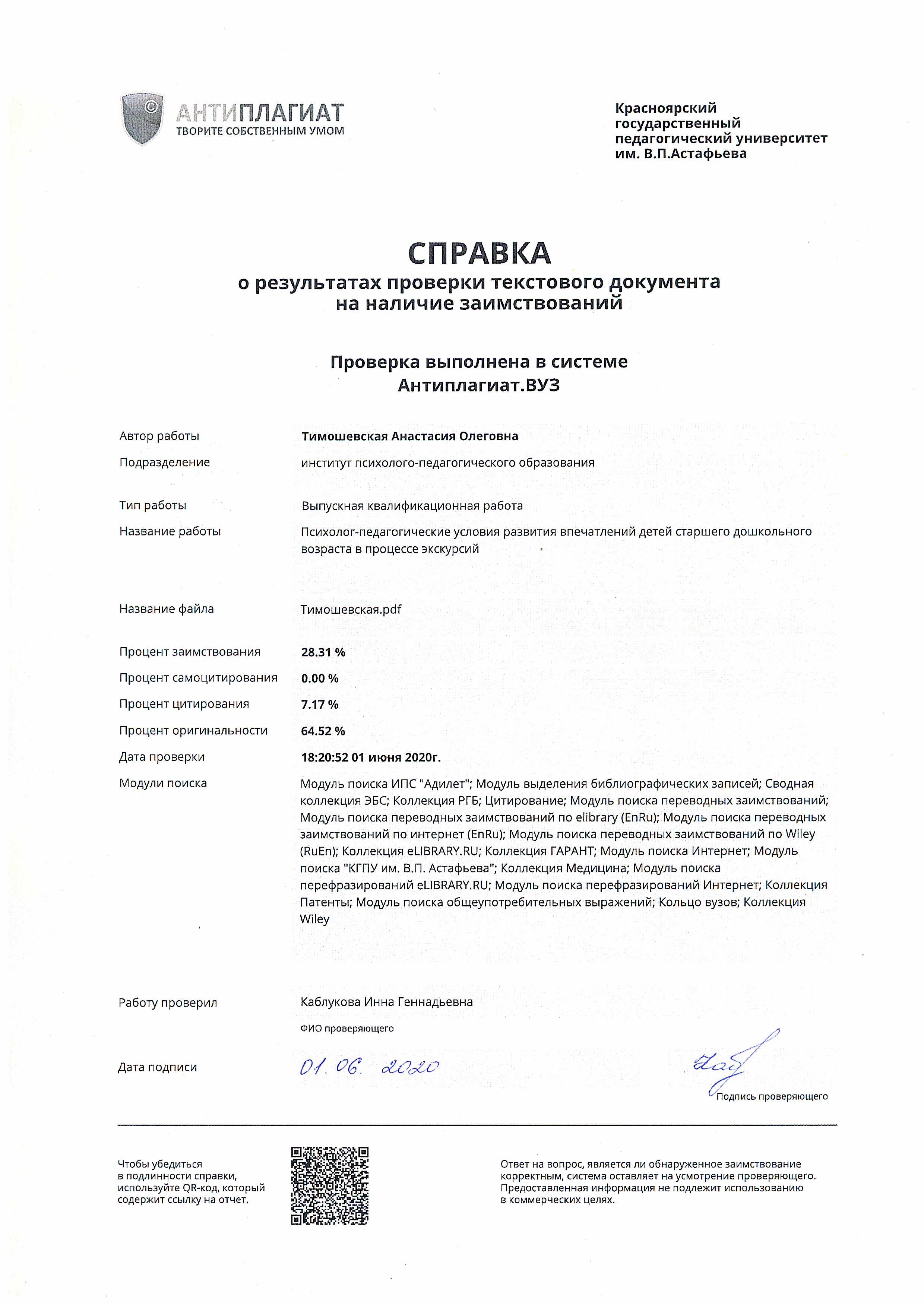 Тимошевская А.О. Психолого-педагогические условия развития впечатлений детей старшего дошкольного возраста в процессе экскурсий