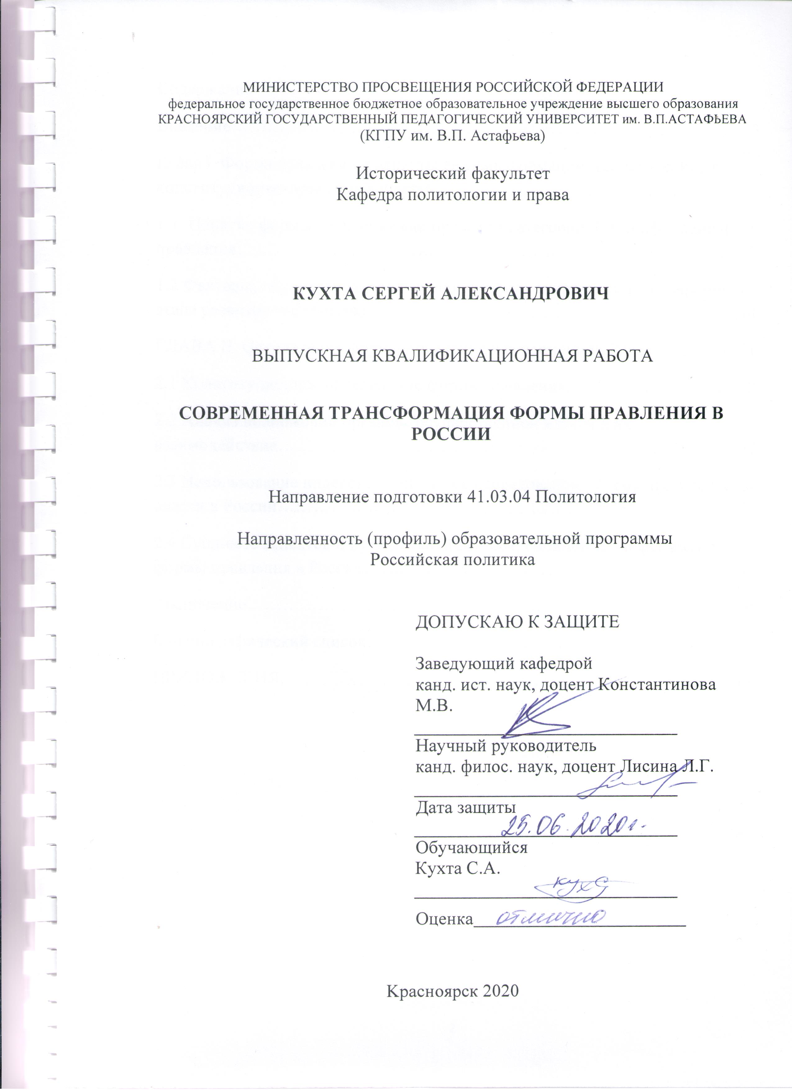 Современная трансформация формы правления в России.