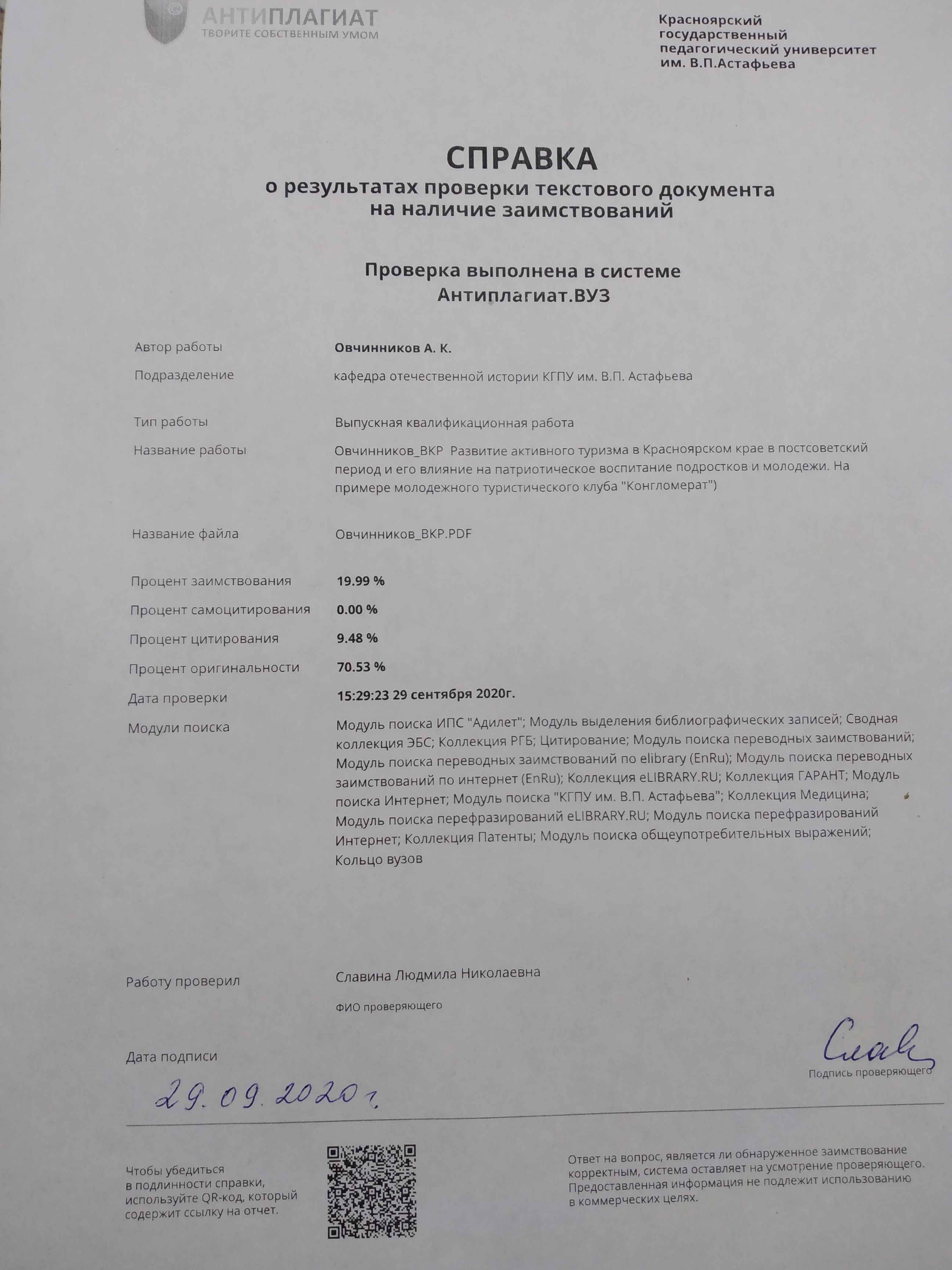 Развитие активного туризма в Красноярском крае в постсоветский период и его влияние на патриотическое воспи. На примере молодежного туристического клуба "Конгломерат")
