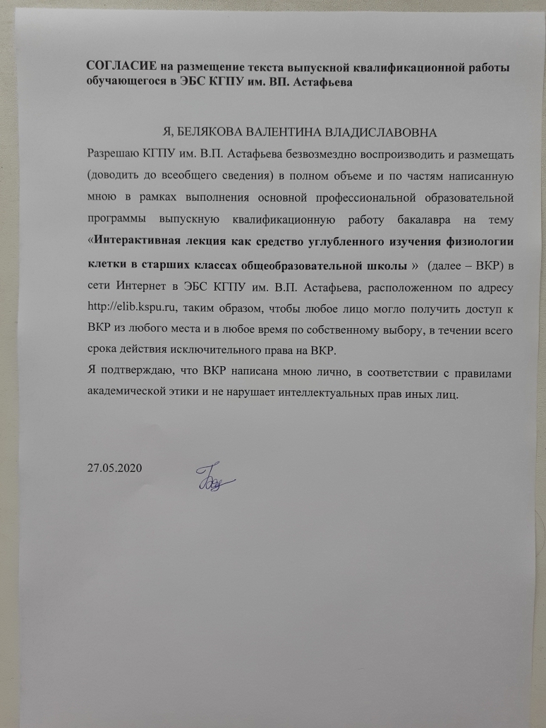 Интерактивная лекция как средство углубленного изучения физиологии клетки в старших классах общеобразовательной школы