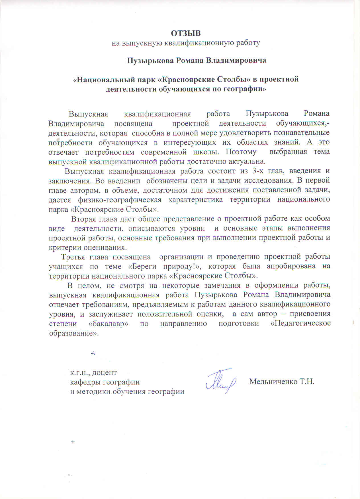 Национальный парк «Красноярские Столбы» в проектной деятельности обучающихся по географии