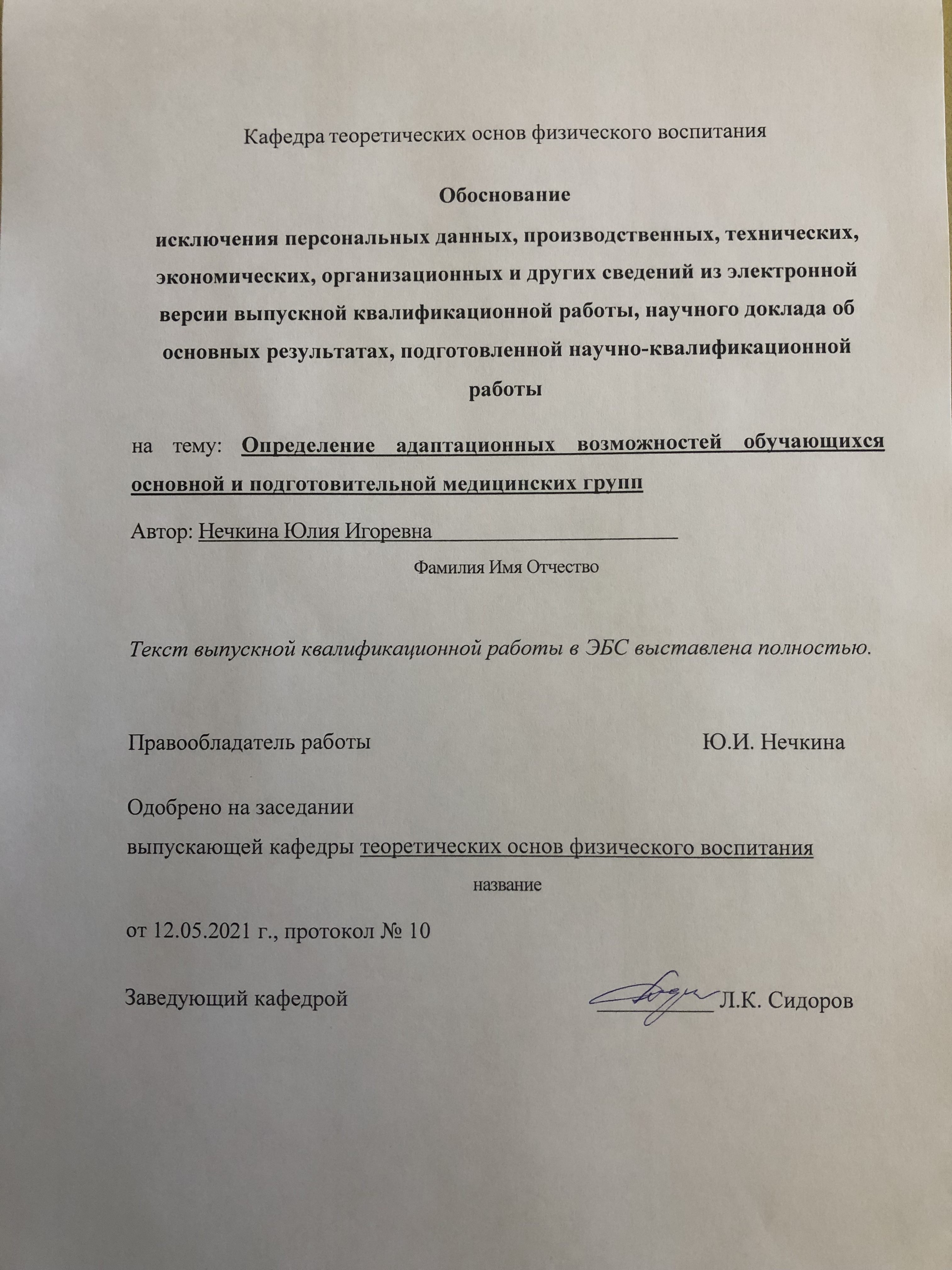 Определение адаптационных возможностей обучающихся основной и подготовительной медицинских групп