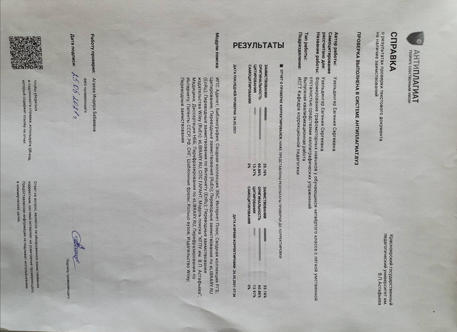 Формирование графомоторных навыков у обучающихся четвертого класса с легкой умственной отсталостью средствами каллиграфических упражнений