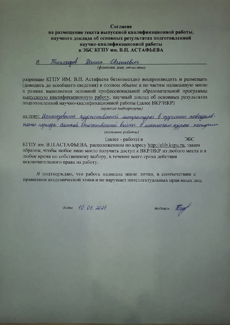 Использование художественной литературы в изучении повседневности периода Великой Отечественной войны в школьном курсе истории