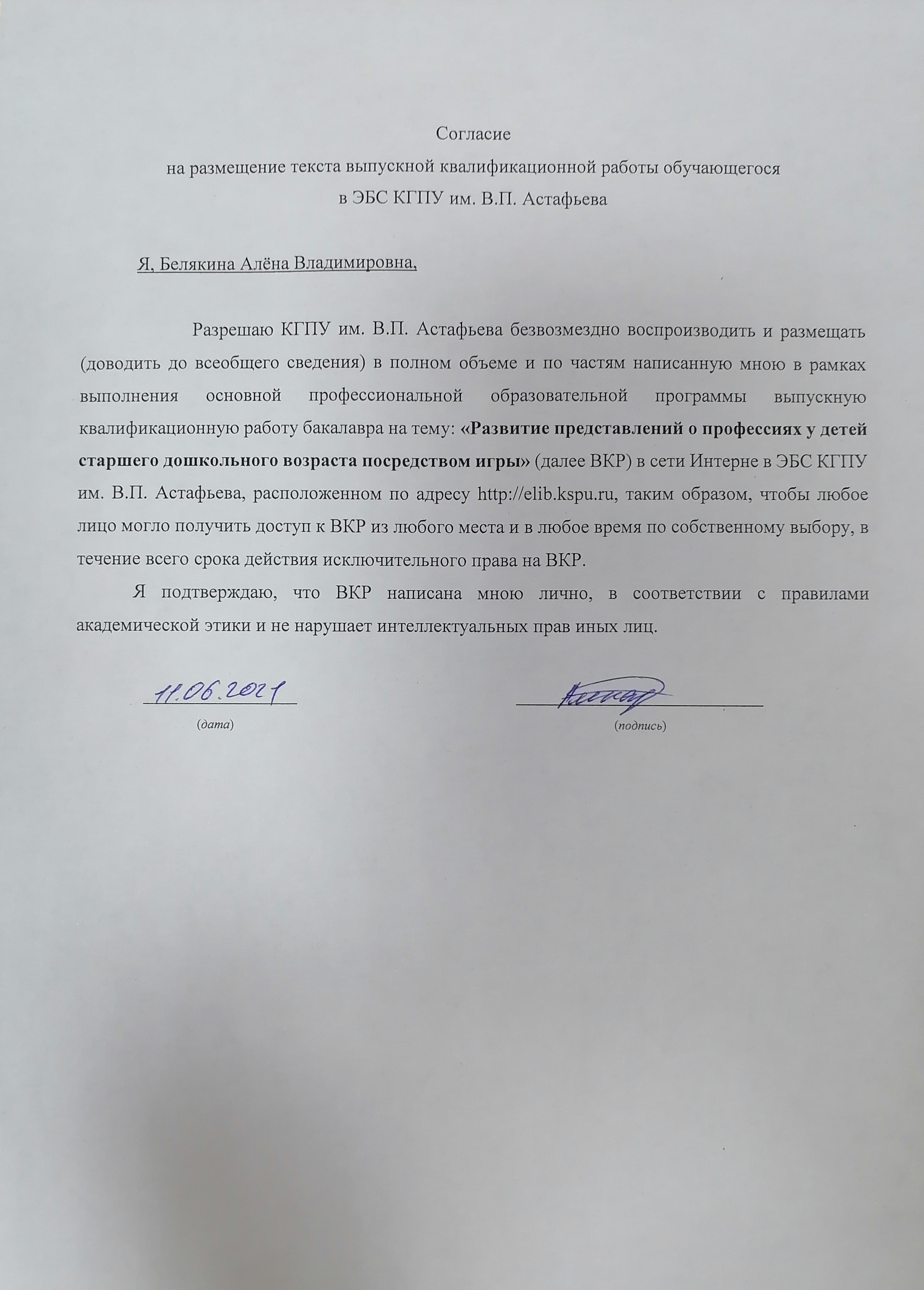 Белякина А.В. РАЗВИТИЕ ПРЕДСТАВЛЕНИЙ О ПРОФЕССИЯХ У ДЕТЕЙ СТАРШЕГО ДОШКОЛЬНОГО ВОЗРАСТА ПОСРЕДСТВОМ ИГРЫ