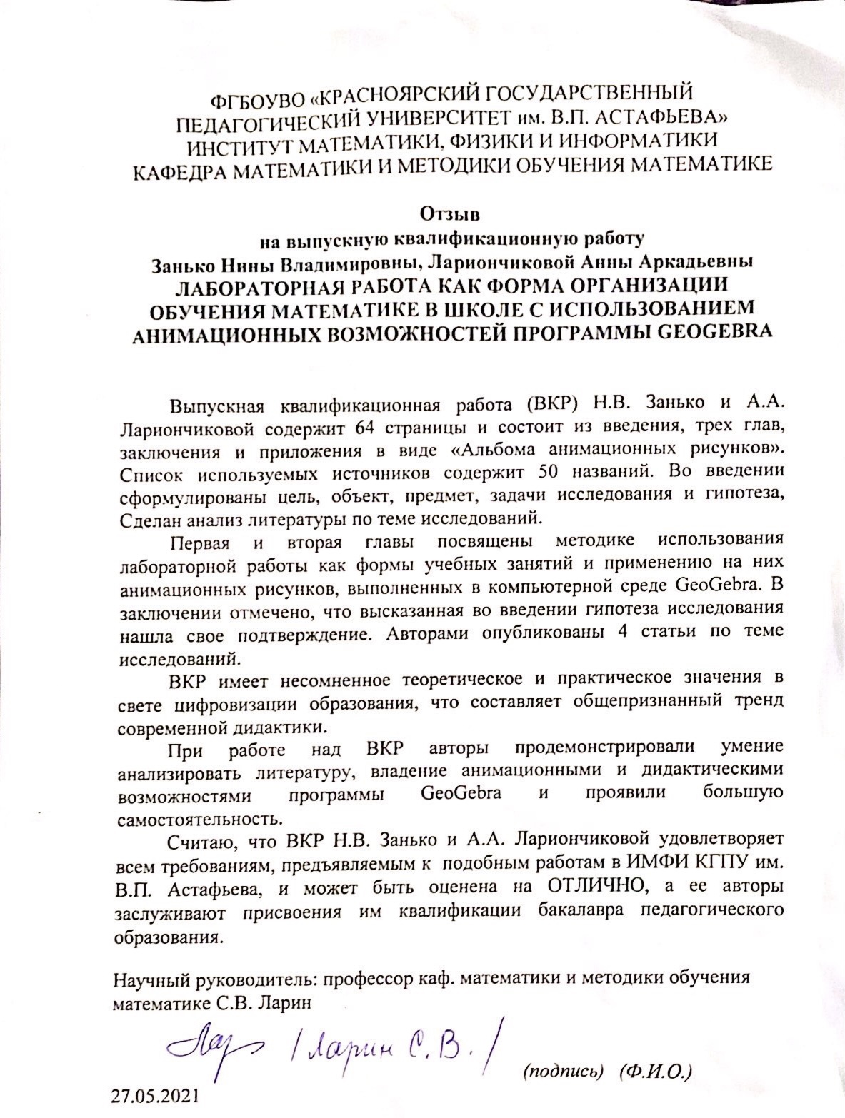 - Кафедра математики и методики обучения математике