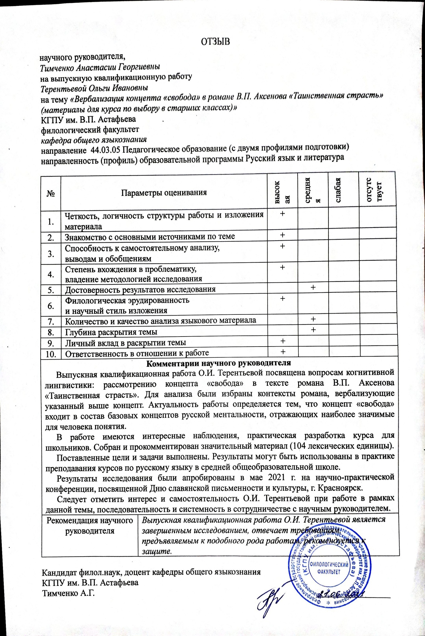 Вербализация концепта «свобода» в романе В.П. Аксенова «Таинственная страсть» (материалы для курса по выбору в старших классах)