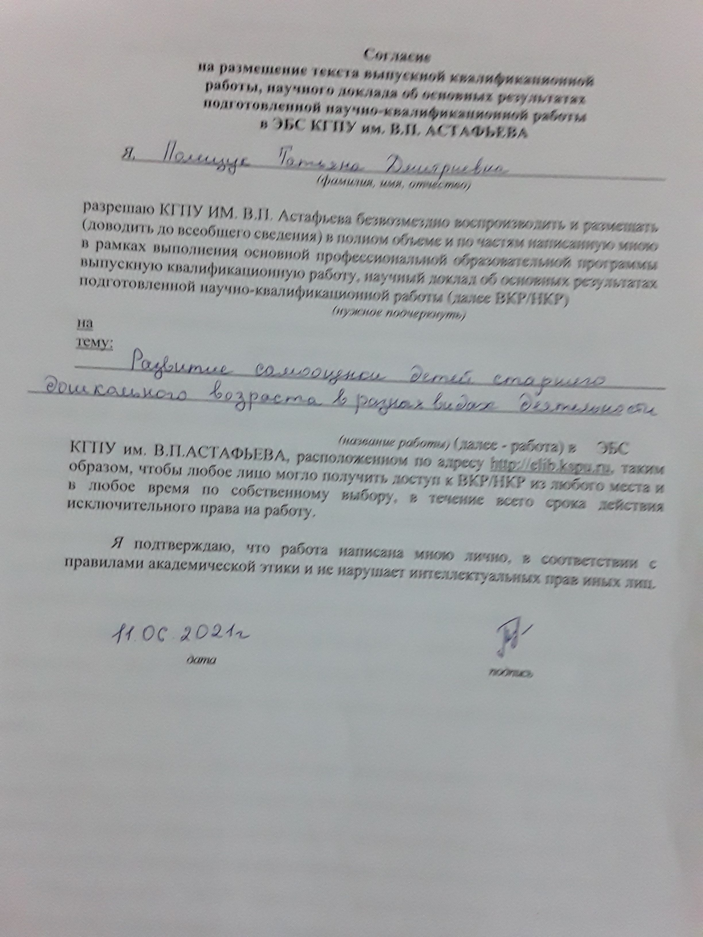 Полещук Т.Д. Развитие самооценки детей старшего дошкольного возраста в разных видах деятельности