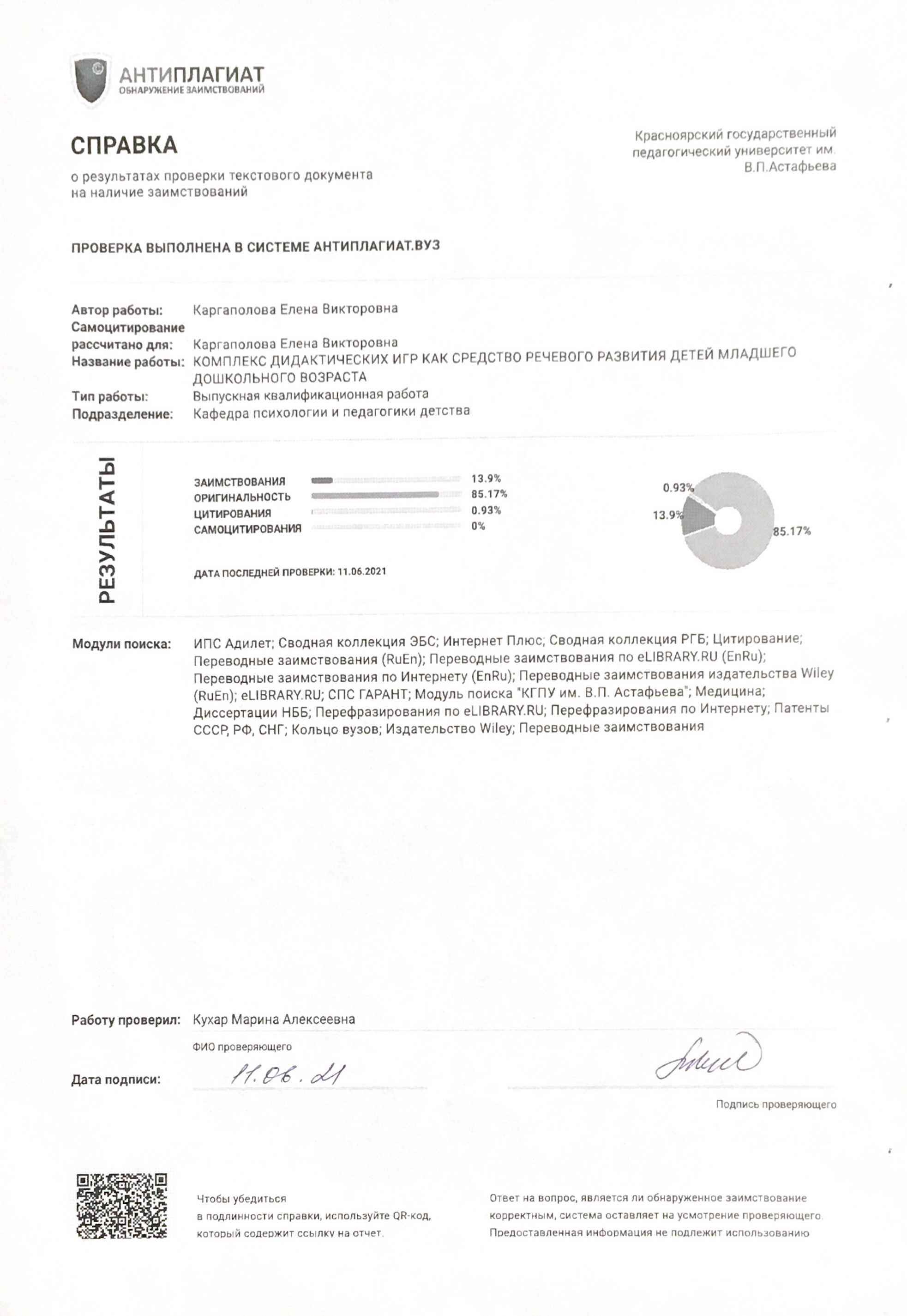 Каргаполова Е. В. Комплекс дидактических игр как средство речевого развития детей младшего дошкольного возраста