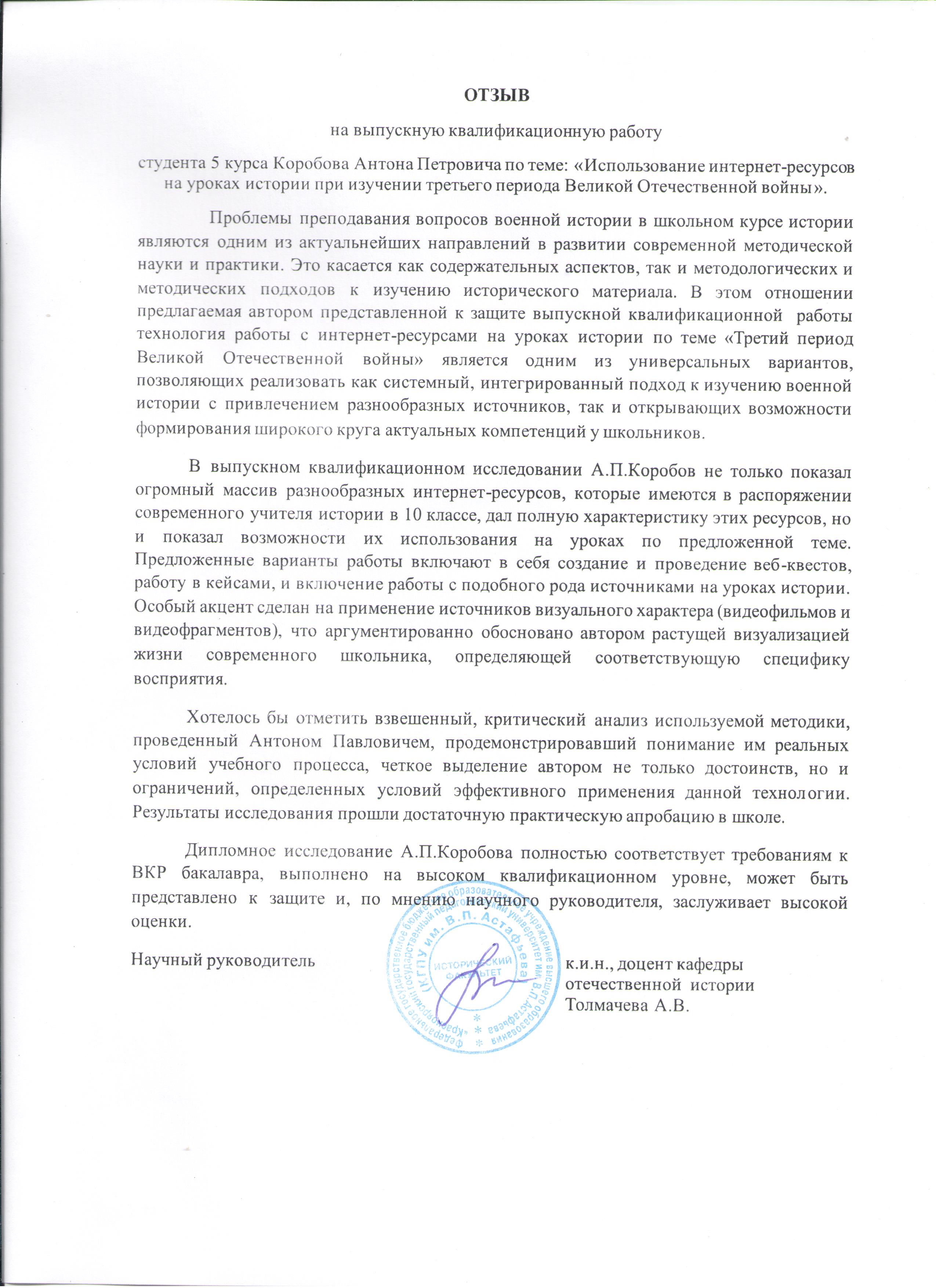 Использование интернет-ресурсов на уроках истории при изучении третьего периода Великой Отечественной войны