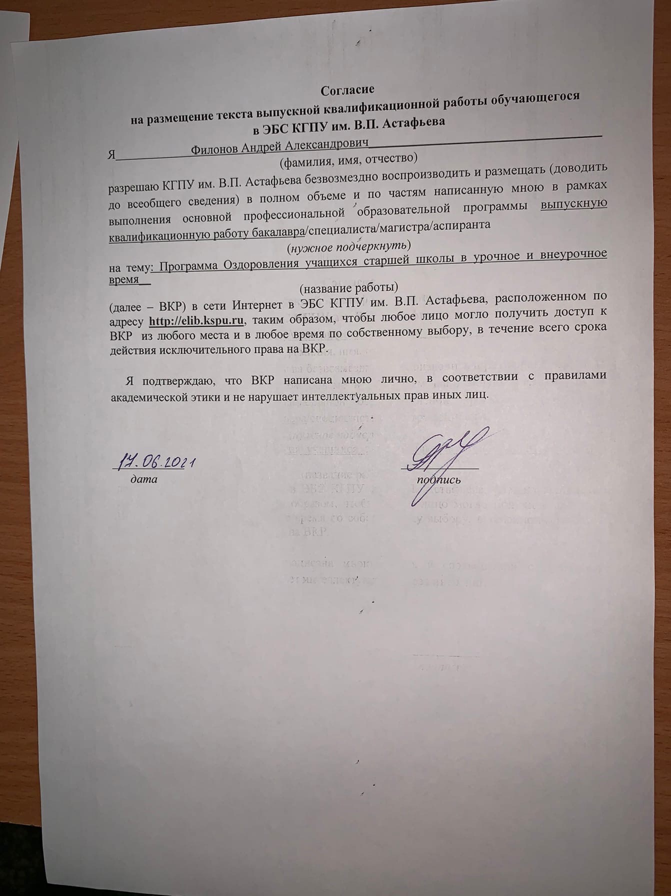 - Образовательная программа