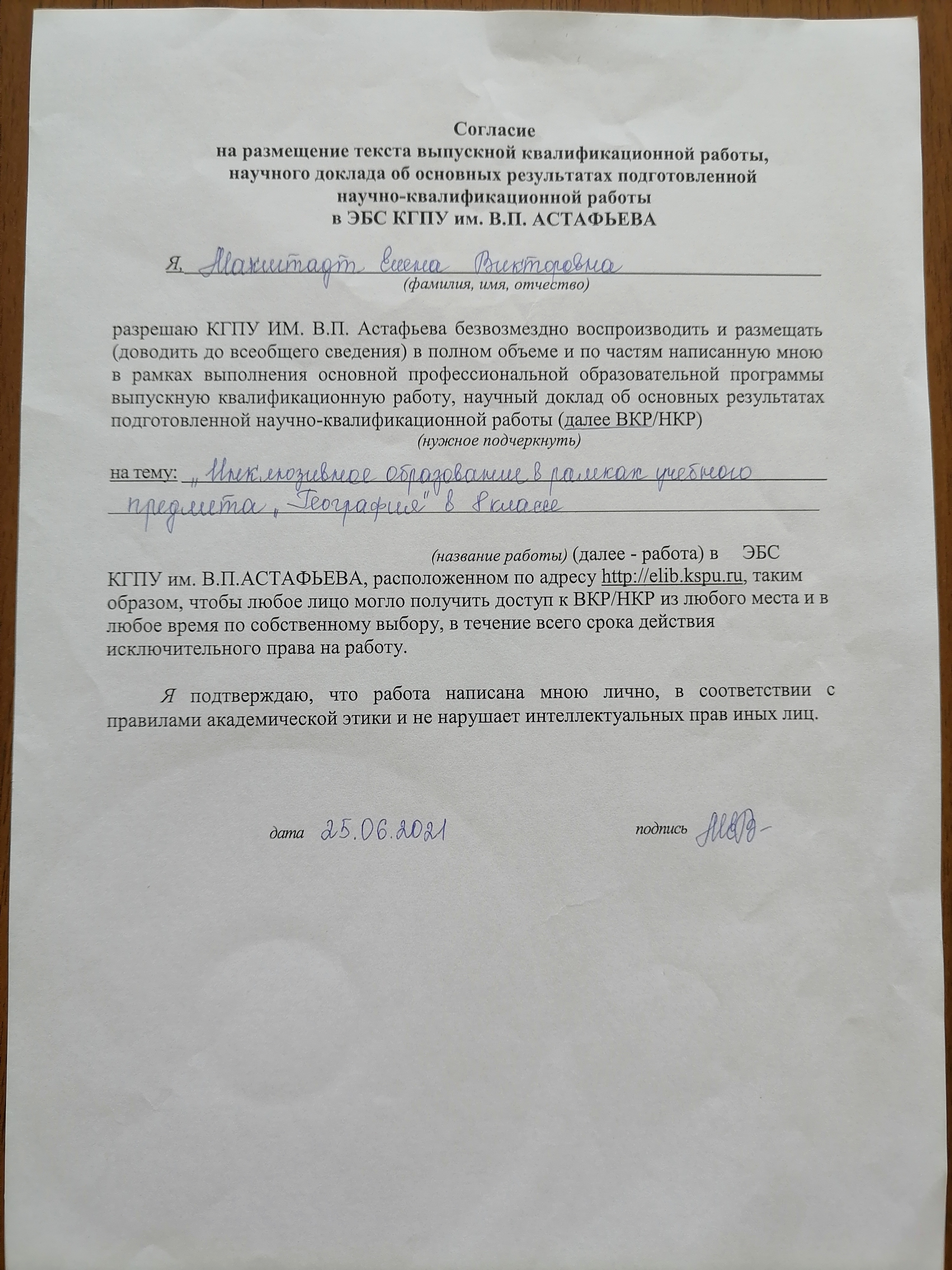 Инклюзивное образование в рамках учебного предмета "География" в 8 классе