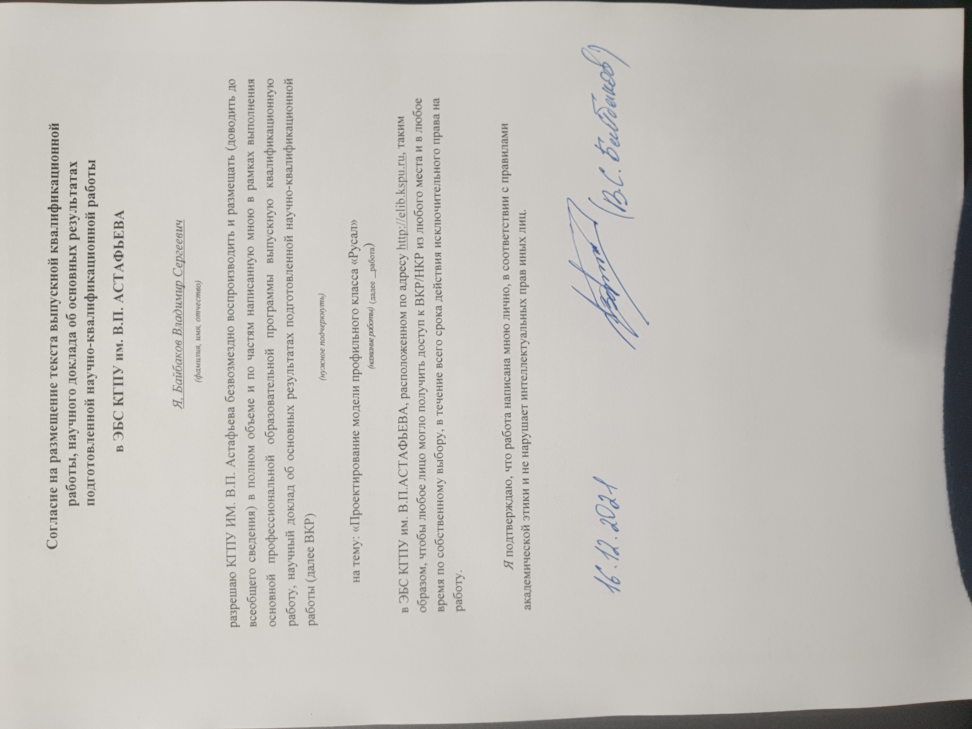 В.С. Байбаков _ проектирование модели профильного класса РУСАЛ