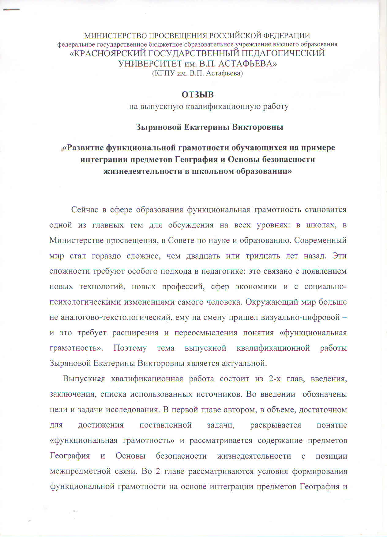Развитие функциональной грамотности обучающихся на примере интеграции предметов География и Основы безопасности жизнедеятельности в школьном образовании