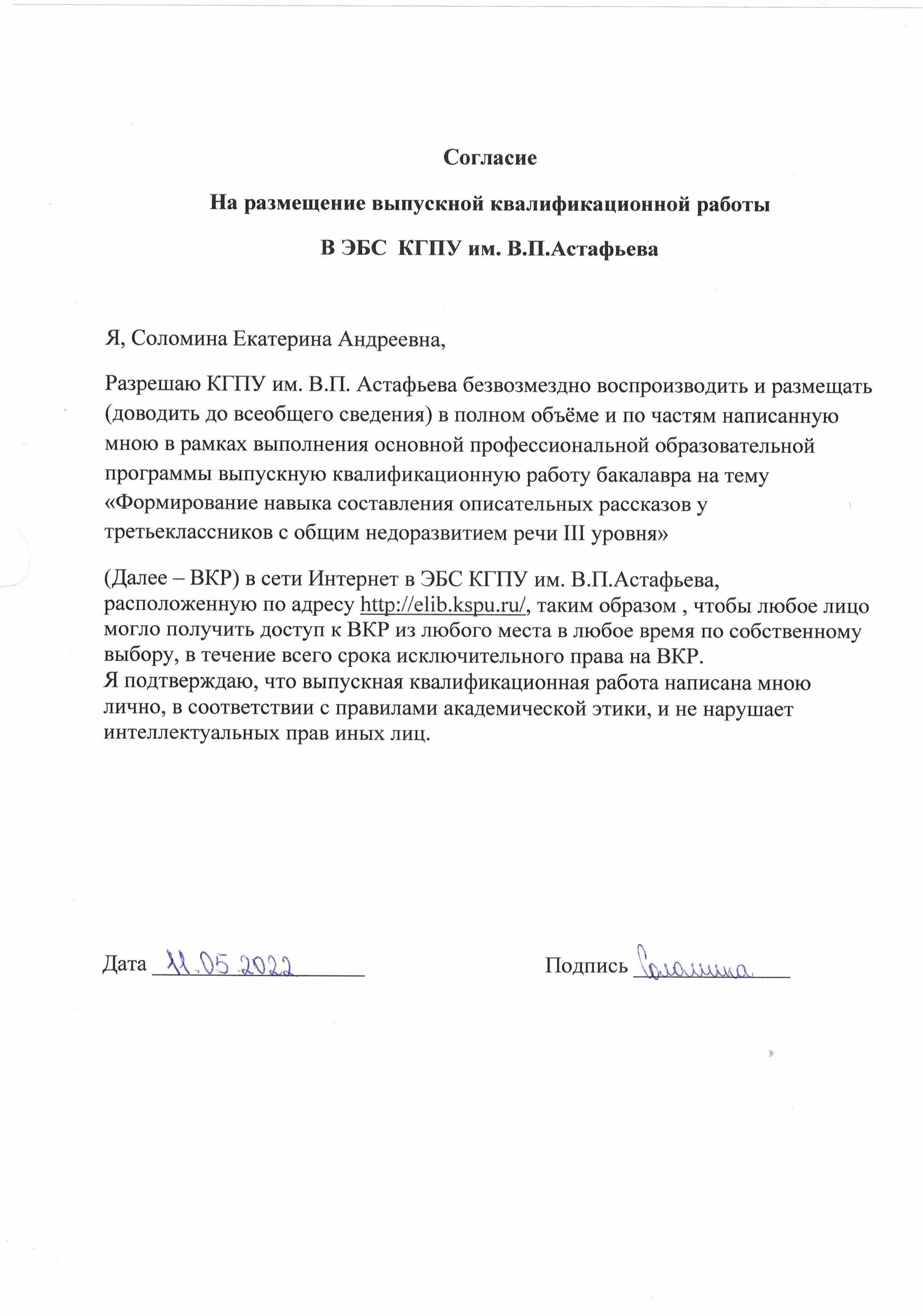 ФОРМИРВАНИЕ НАВЫКА СОСТАВЛЕНИЯ ОПИСАТЕЛЬНЫХ РАССКАЗОВ У ТРЕТЬЕКЛАССНИКОВ С ОБЩИМ НЕДОРАЗВИТИЕМ РЕЧИ III УРОВНЯ