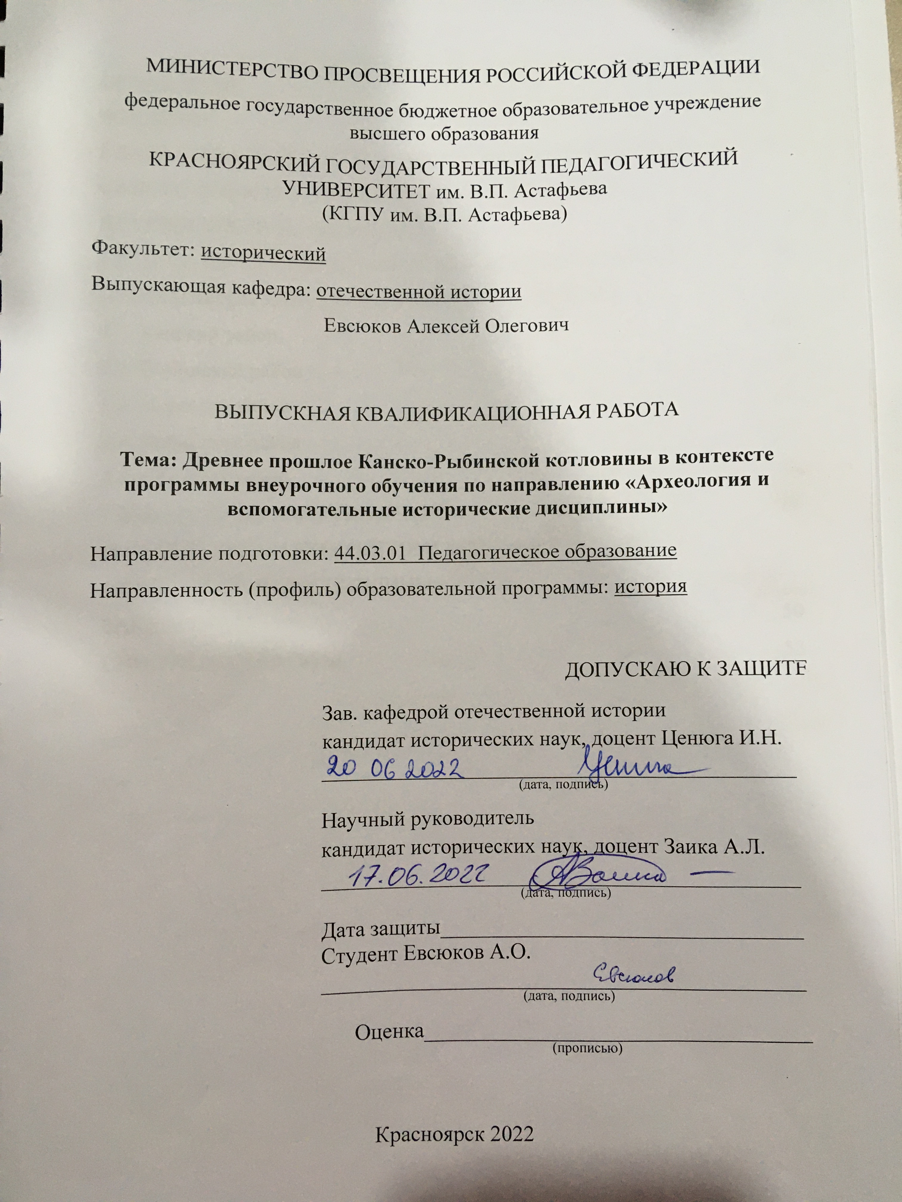 Древнее прошлое Канско-Рыбинской котловины в контексте программы внеурочного обучения по направлению «Археология и вспомогательные исторические дисциплины»