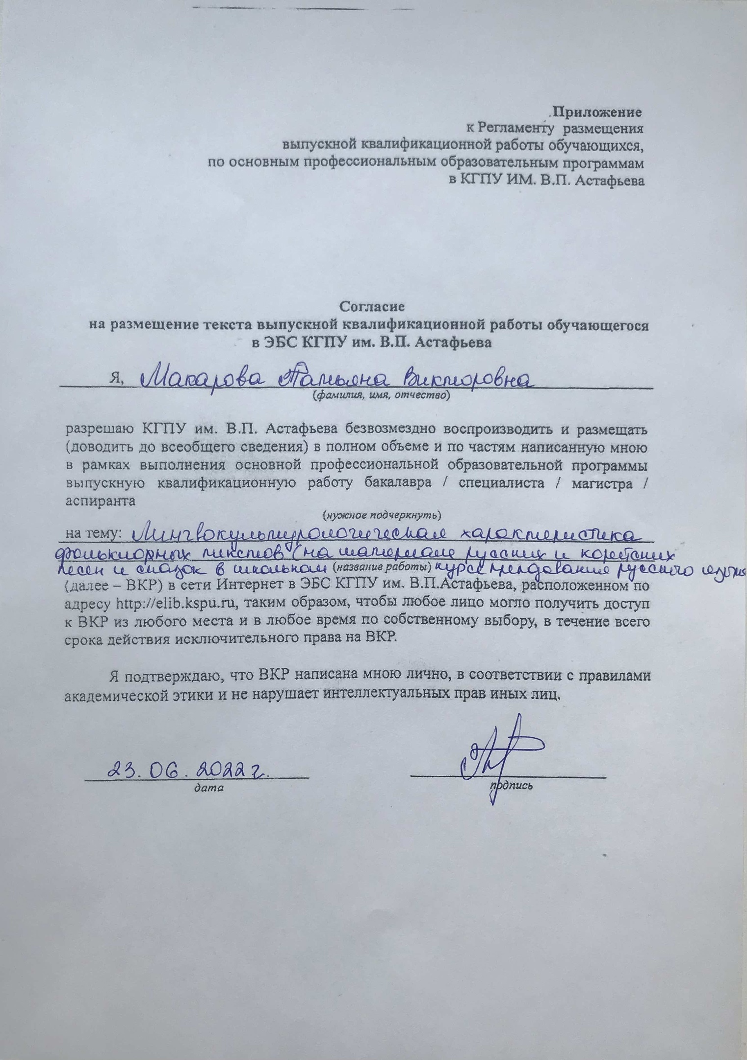 Лингвокультурологическая характеристика фольклорных текстов (на материале русских и корейских песен и сказок в школьном курсе преподавания русского языка)