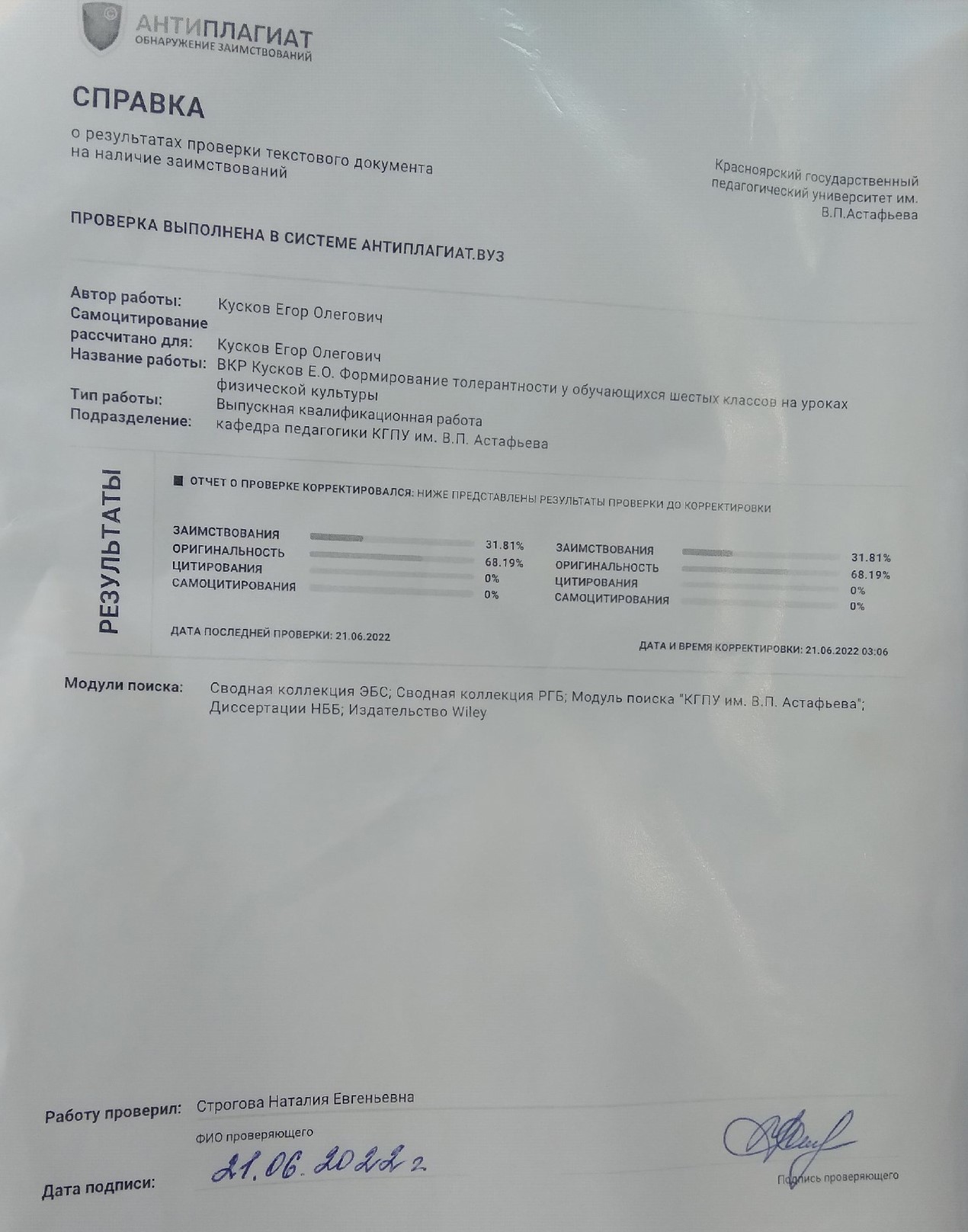 Формирование толерантности у обучающихся шестых классов на уроках физической культуры
