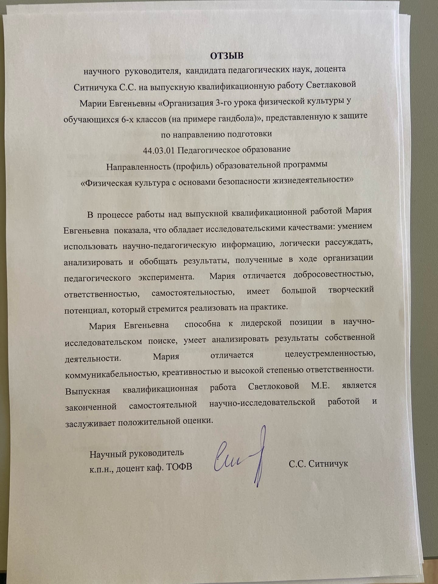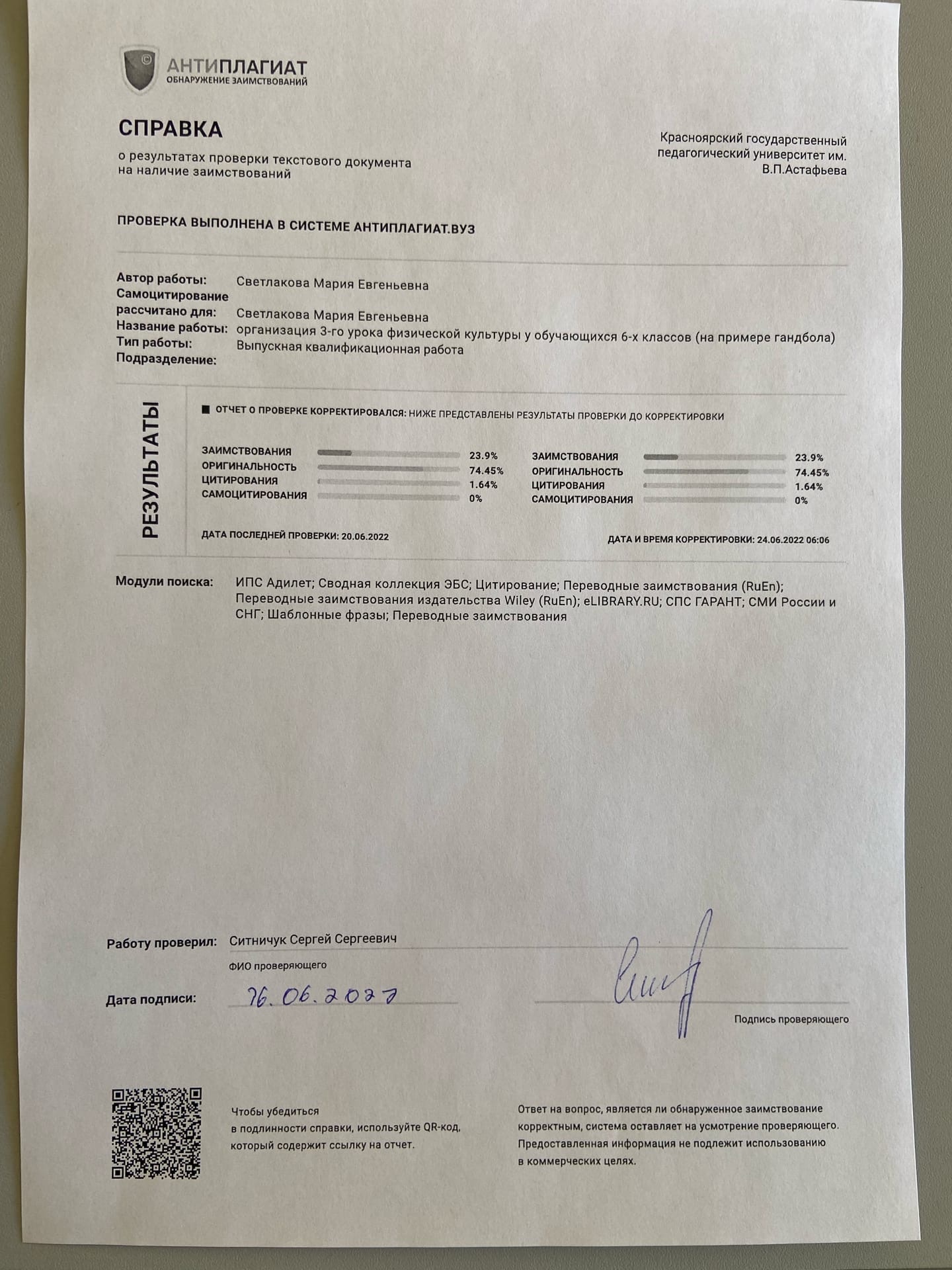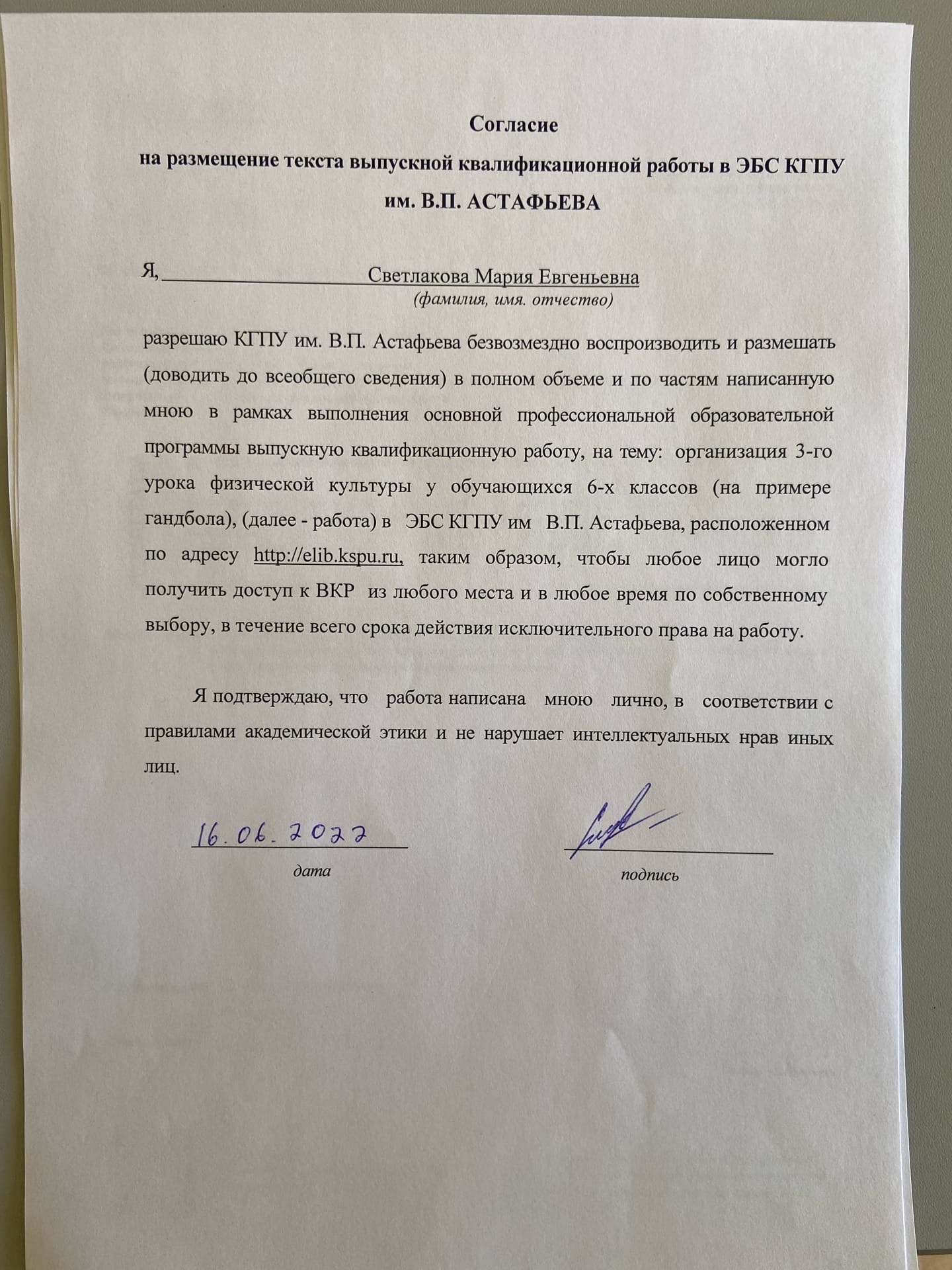 Организация 3-го урока физической культуры у обучающихся 6-х классов (на примере гандбола)