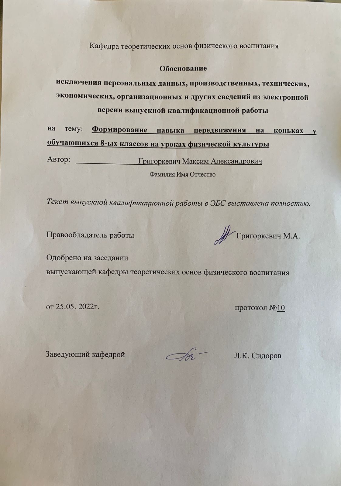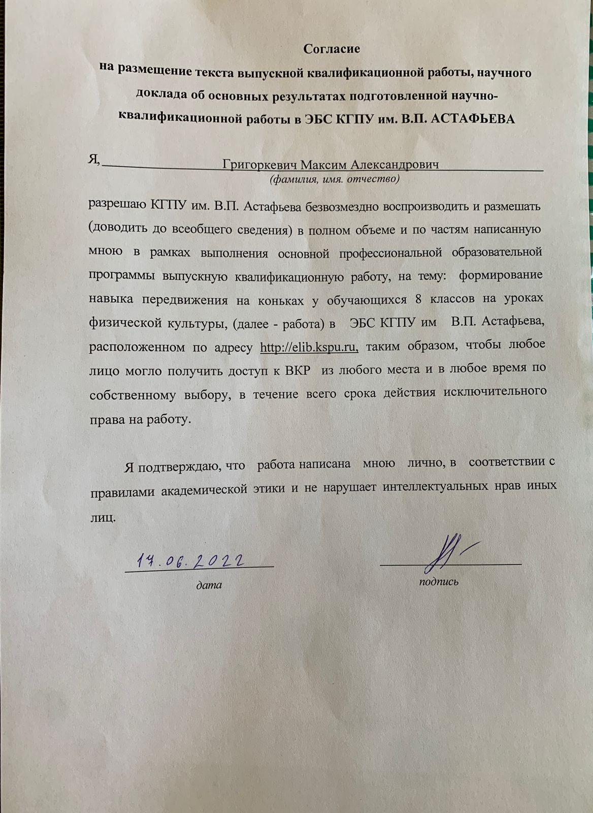 Формирование навыка передвижения на коньках у обучающихся 8 классов на уроках физической культуры