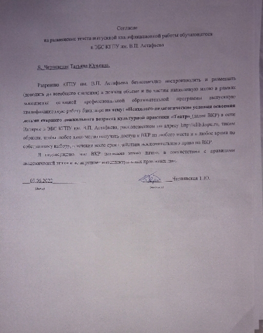 Чернявская Т.Ю. Психолого-педагогические условия освоения детьми старшего дошкольного возраста культурной практики «Театр»