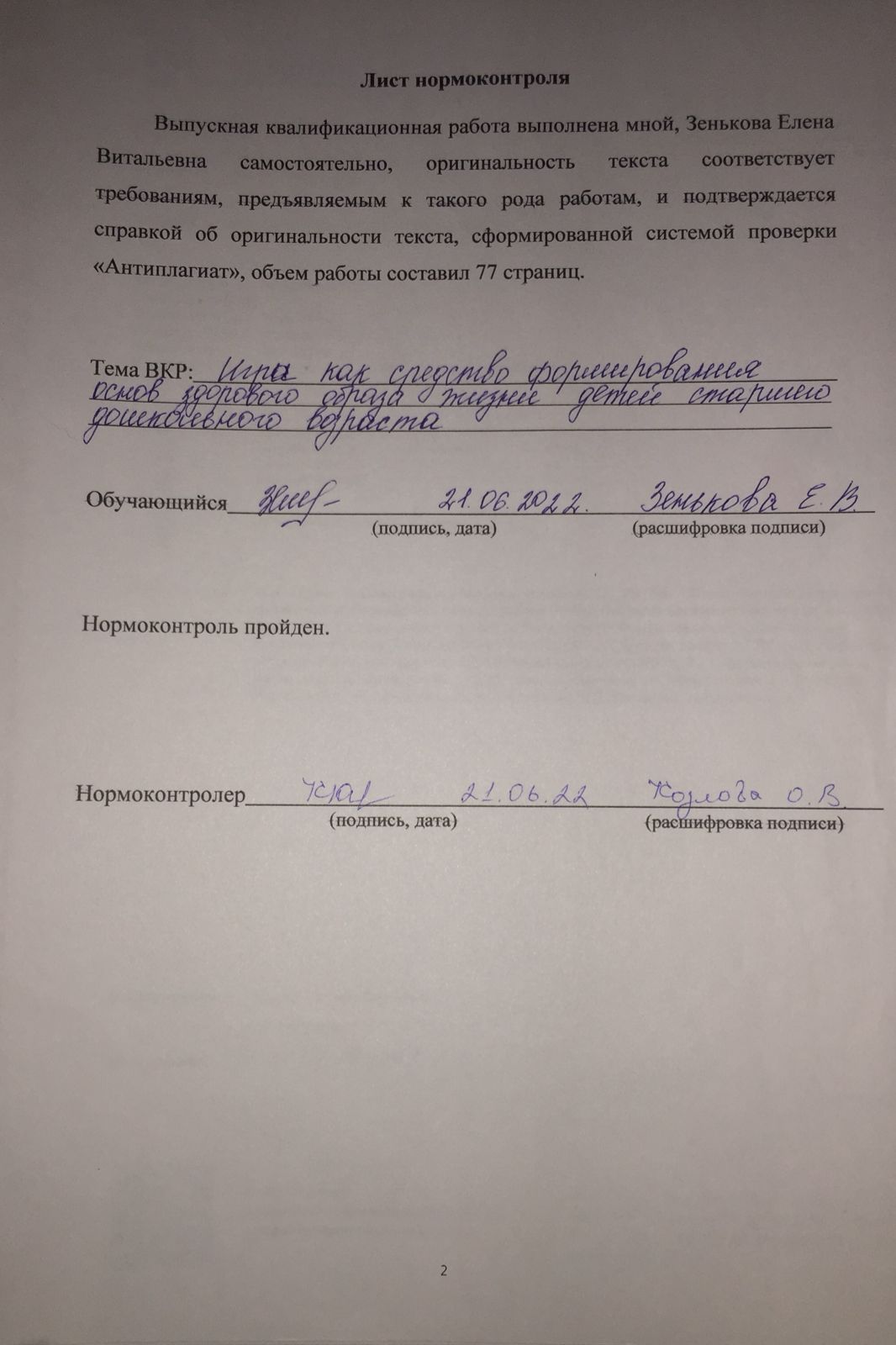Зенькова Е.В. ВКР ИГРЫ КАК СРЕДСТВО ФОРМИРОВАНИЯ ОСНОВ ЗДОРОВОГО ОБРАЗА ЖИЗНИ ДЕТЕЙ СТАРШЕГО ДОШКОЛЬНОГО ВОЗРАСТА