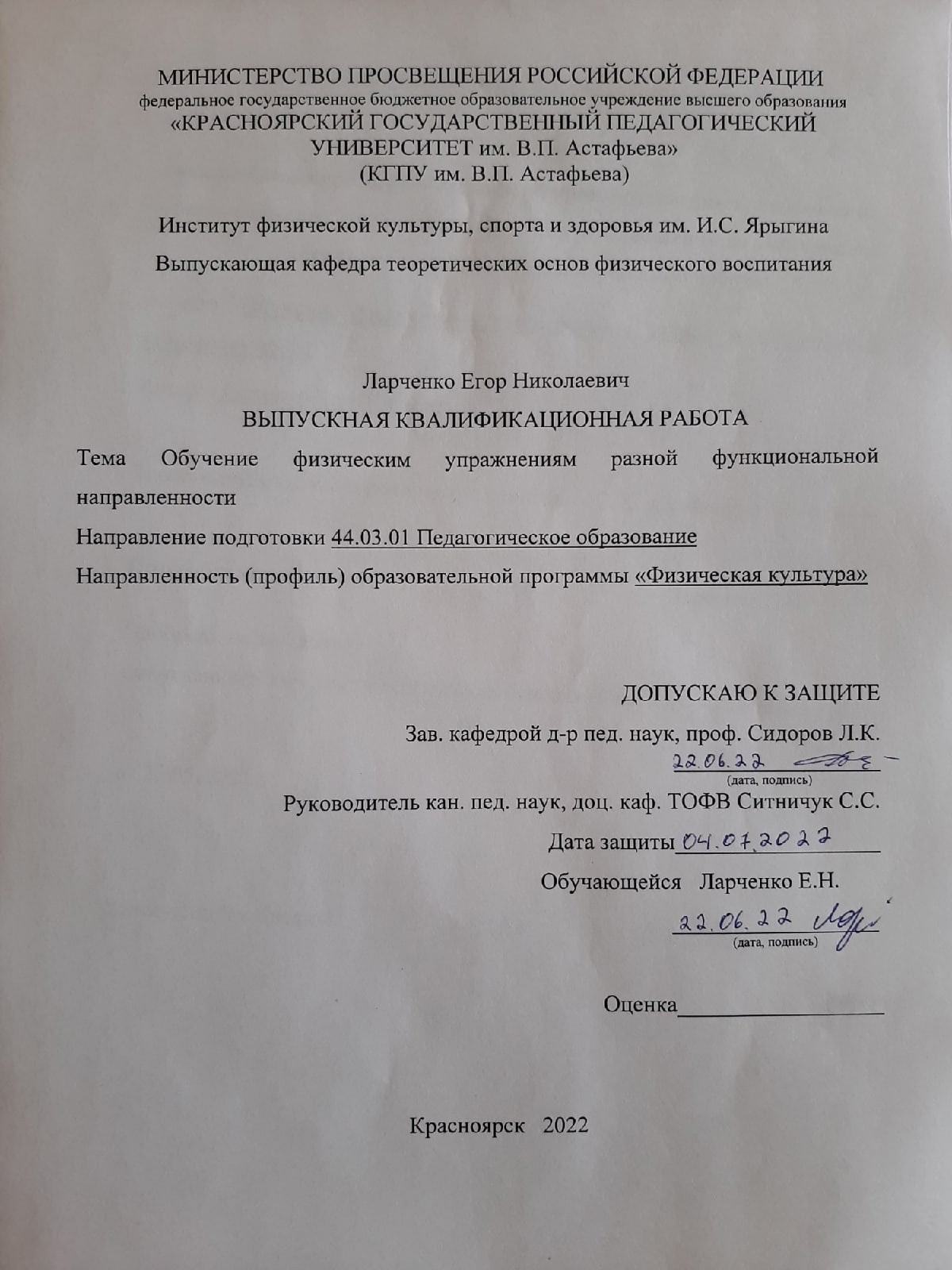 - 44.03.01 Педагогическое образование - Физическая культура (о)