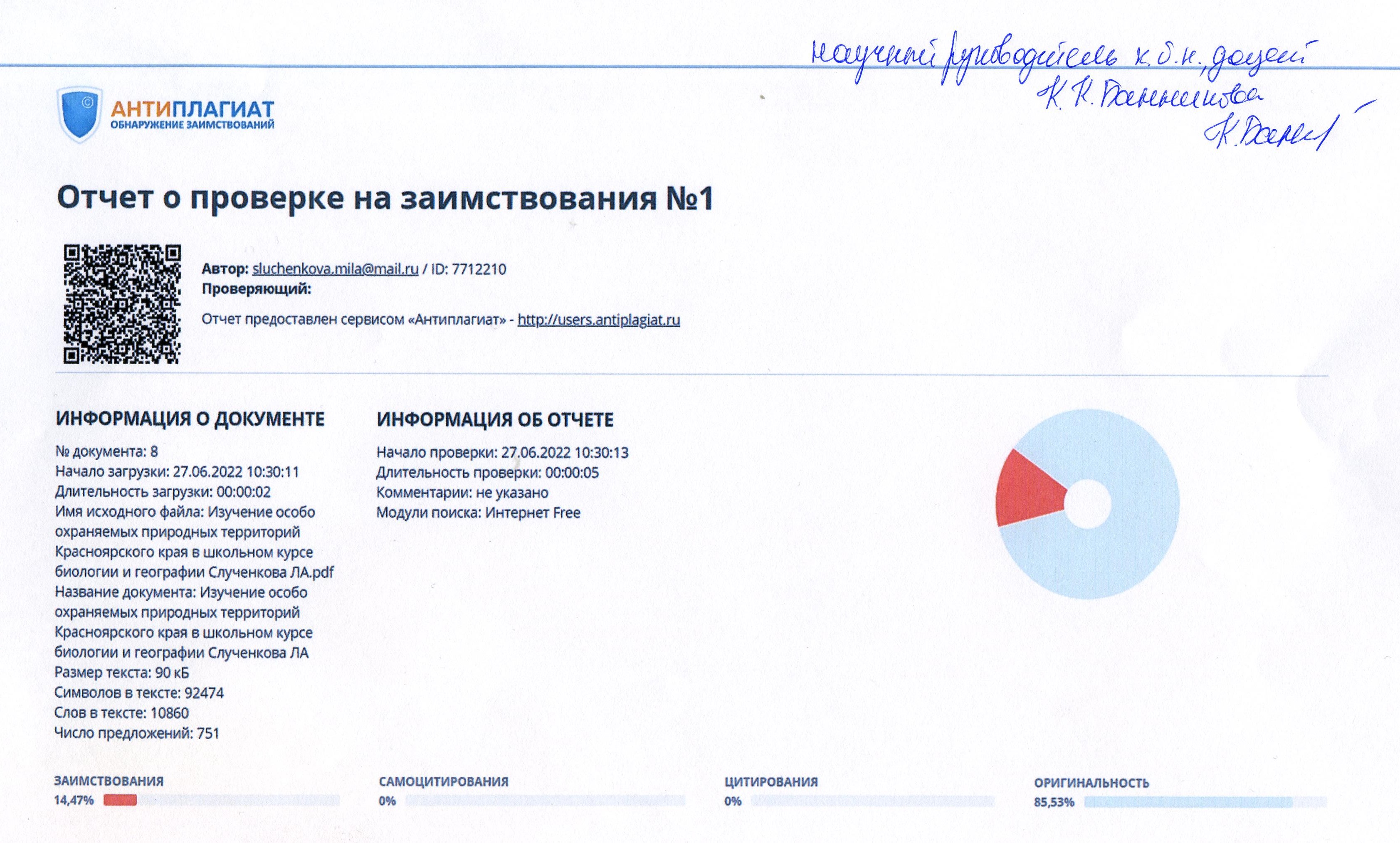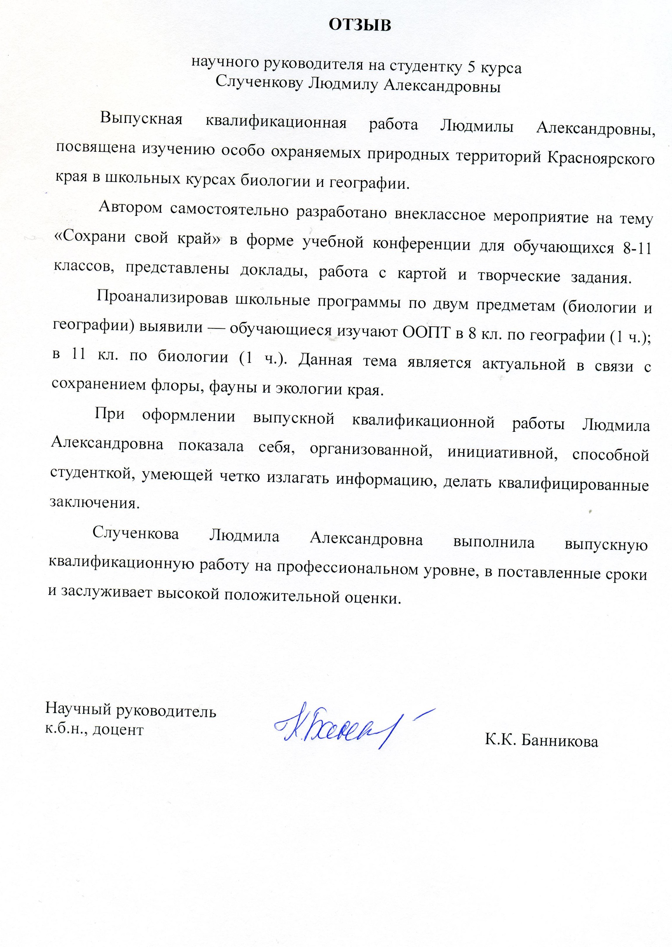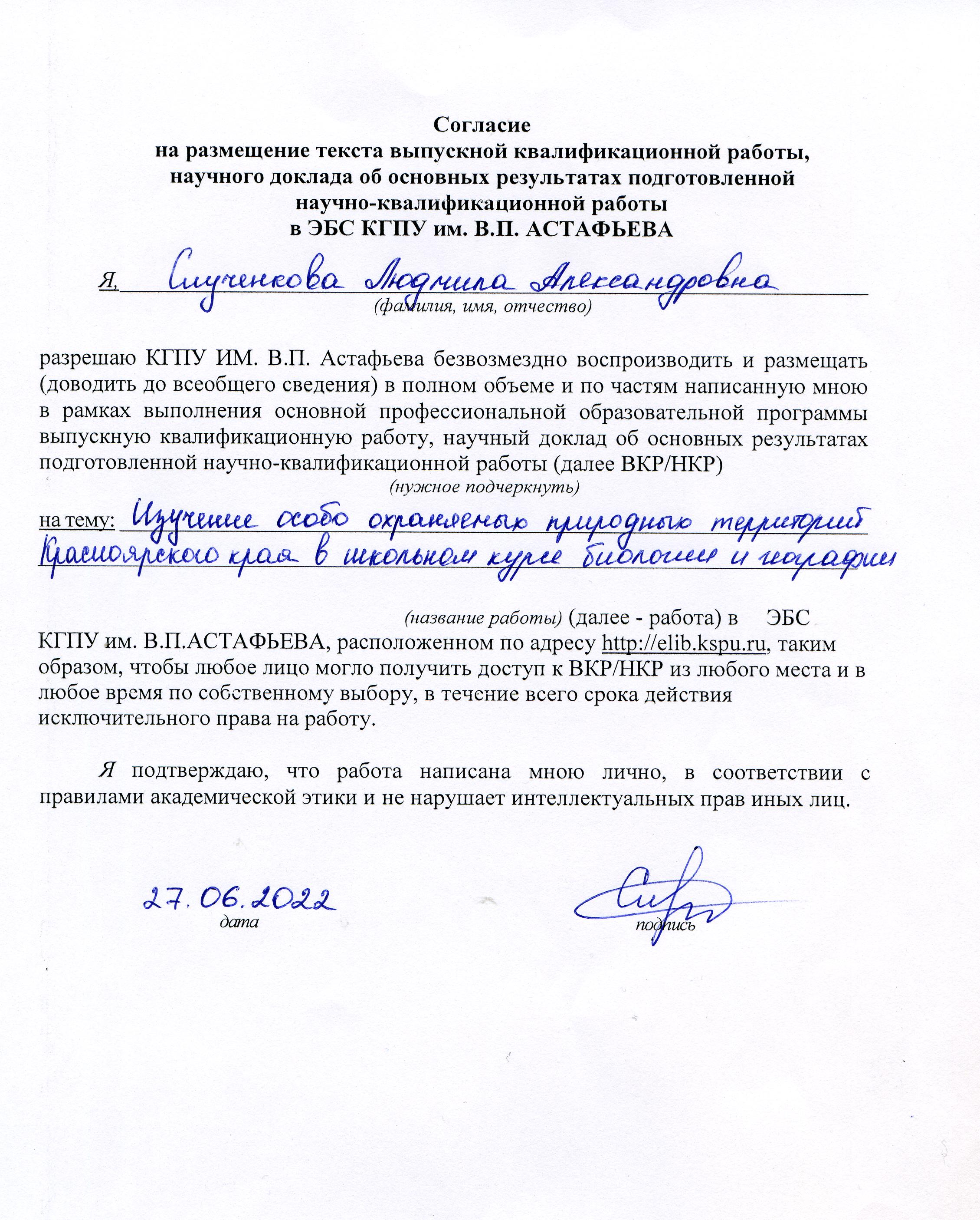 Слученкова Л.А. Изучение особо охраняемых природных территорий Красноярского края в школьном курсе биологии и географии