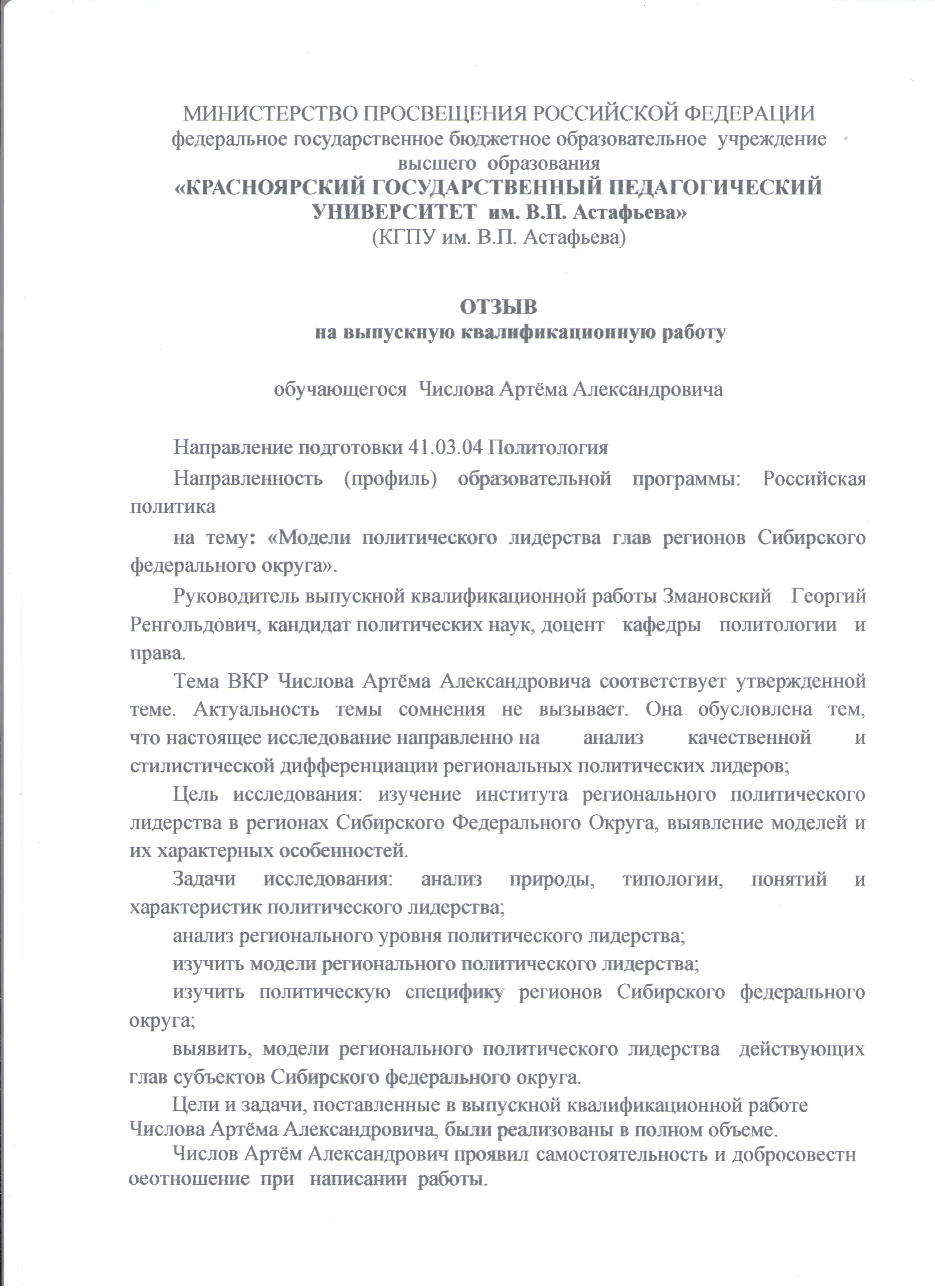 Модели политического лидерства глав регионов Сибирского федерального округа