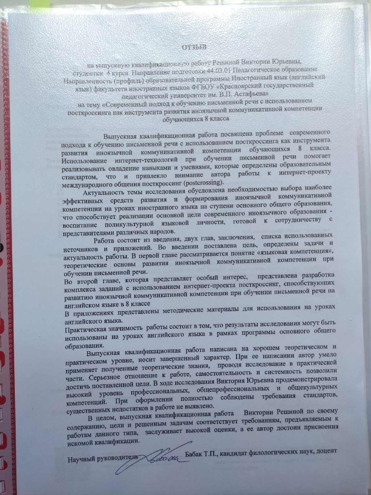 Современный подход к обучению письменной речи с использованием посткроссинга как инструмента развития иноязычной коммуникативной компетенции обучающихся 8 класса