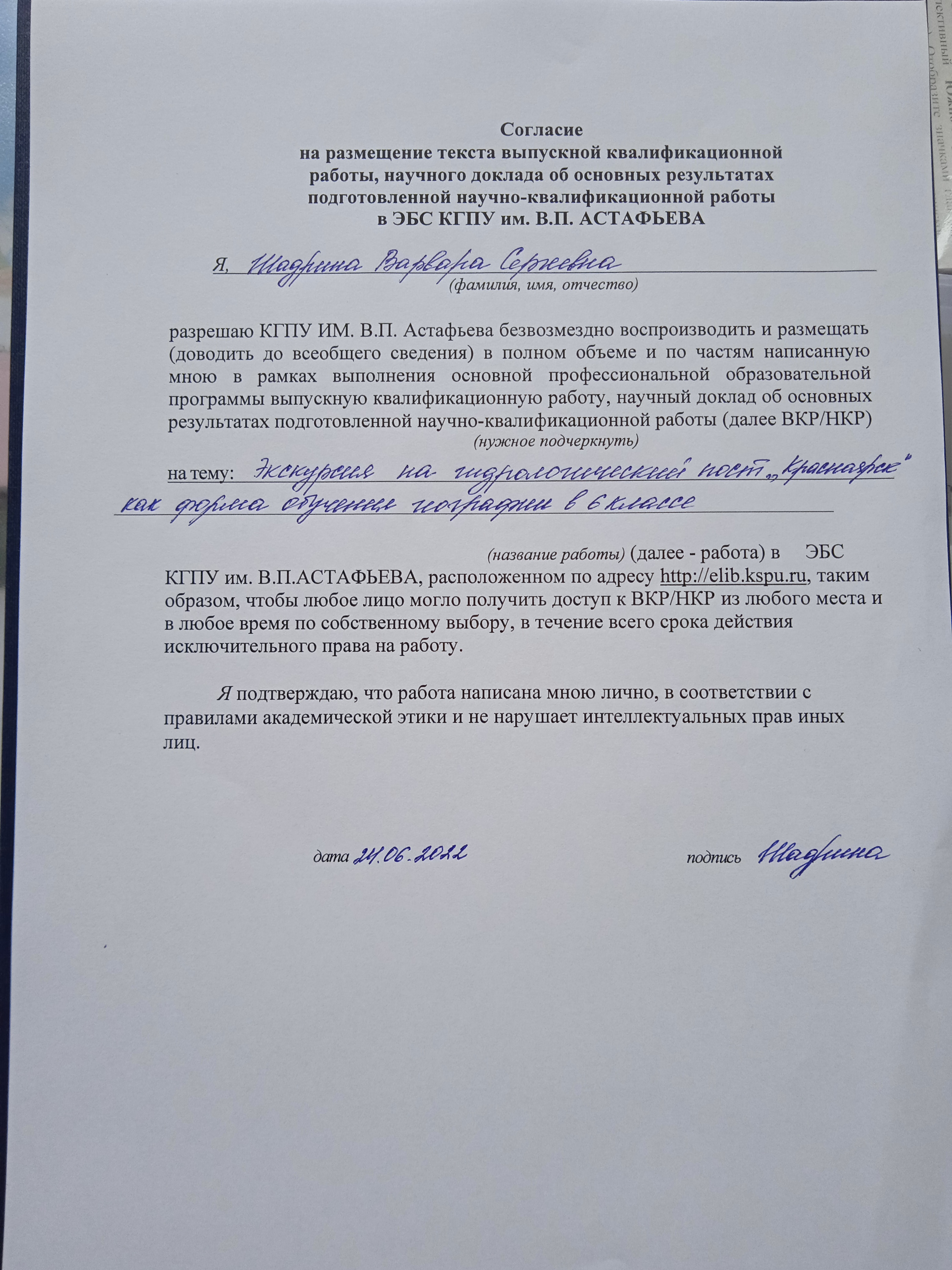 Экскурсия на гидрологический пост «Красноярск» как форма обучения географии в 6 классе