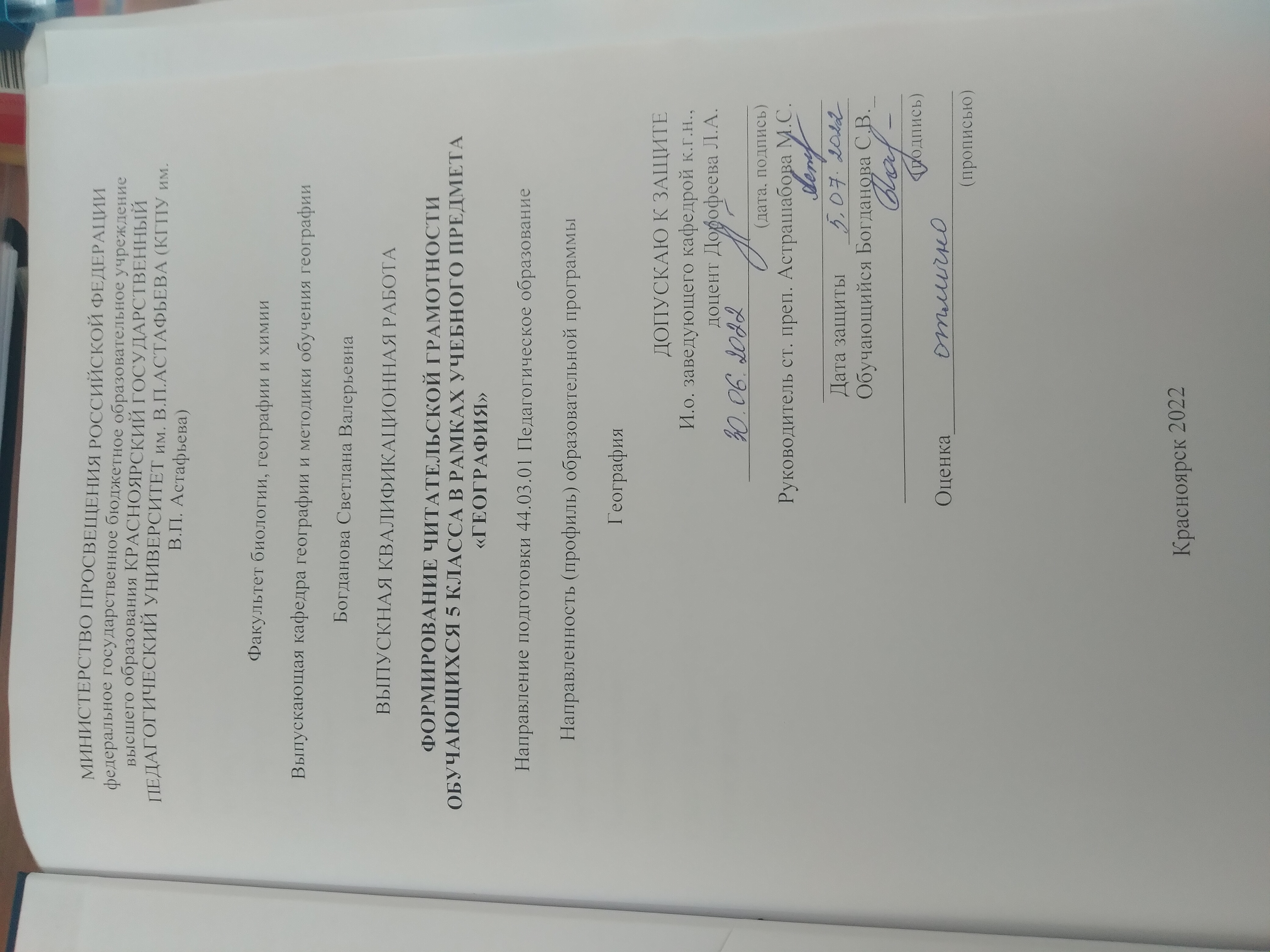 Формирование читательской грамотности обучающихся 5 класса в рамках учебного предмета "География"