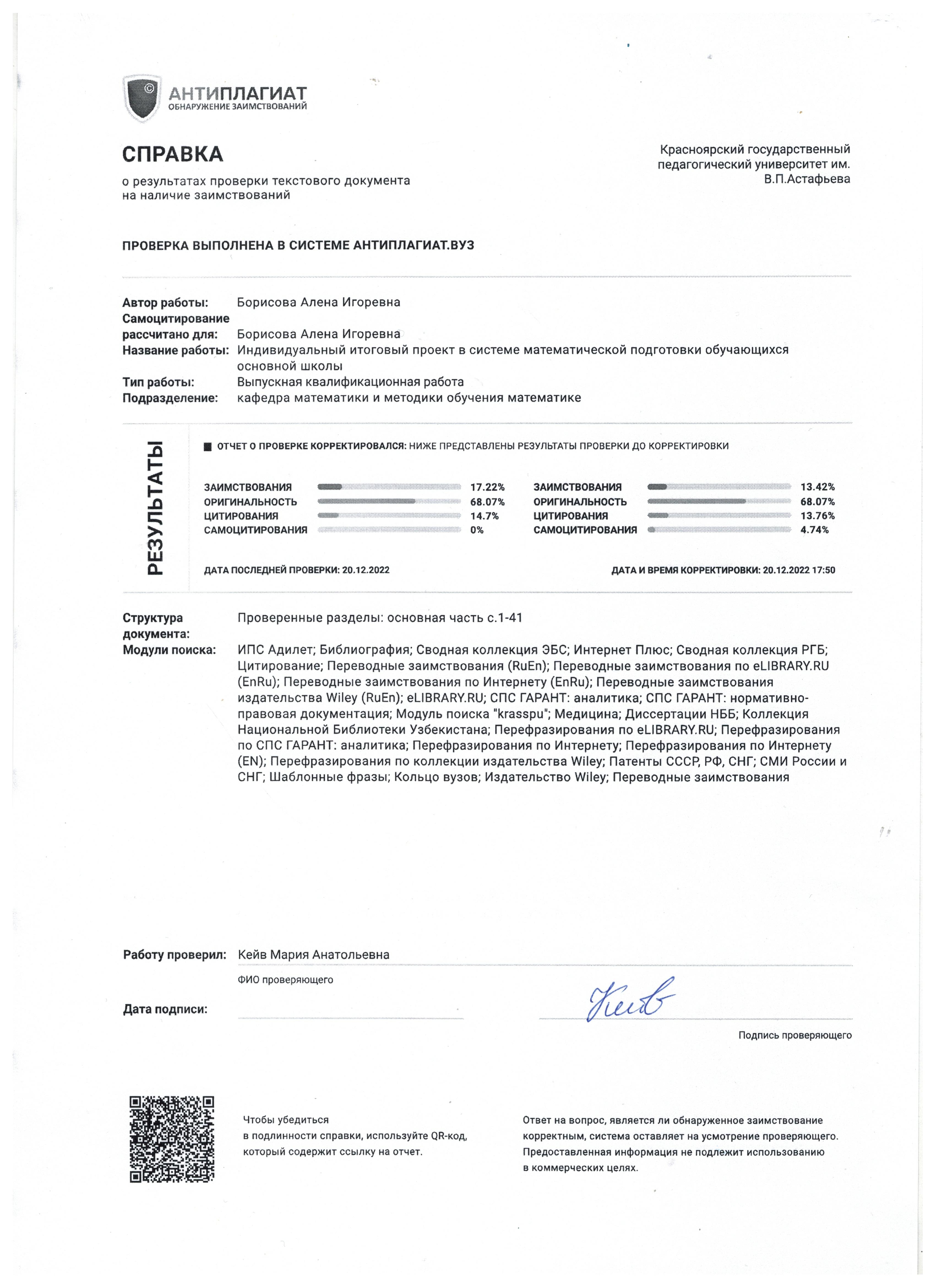Индивидуальный итоговый проект в системе математической подготовки обучающихся основной школы