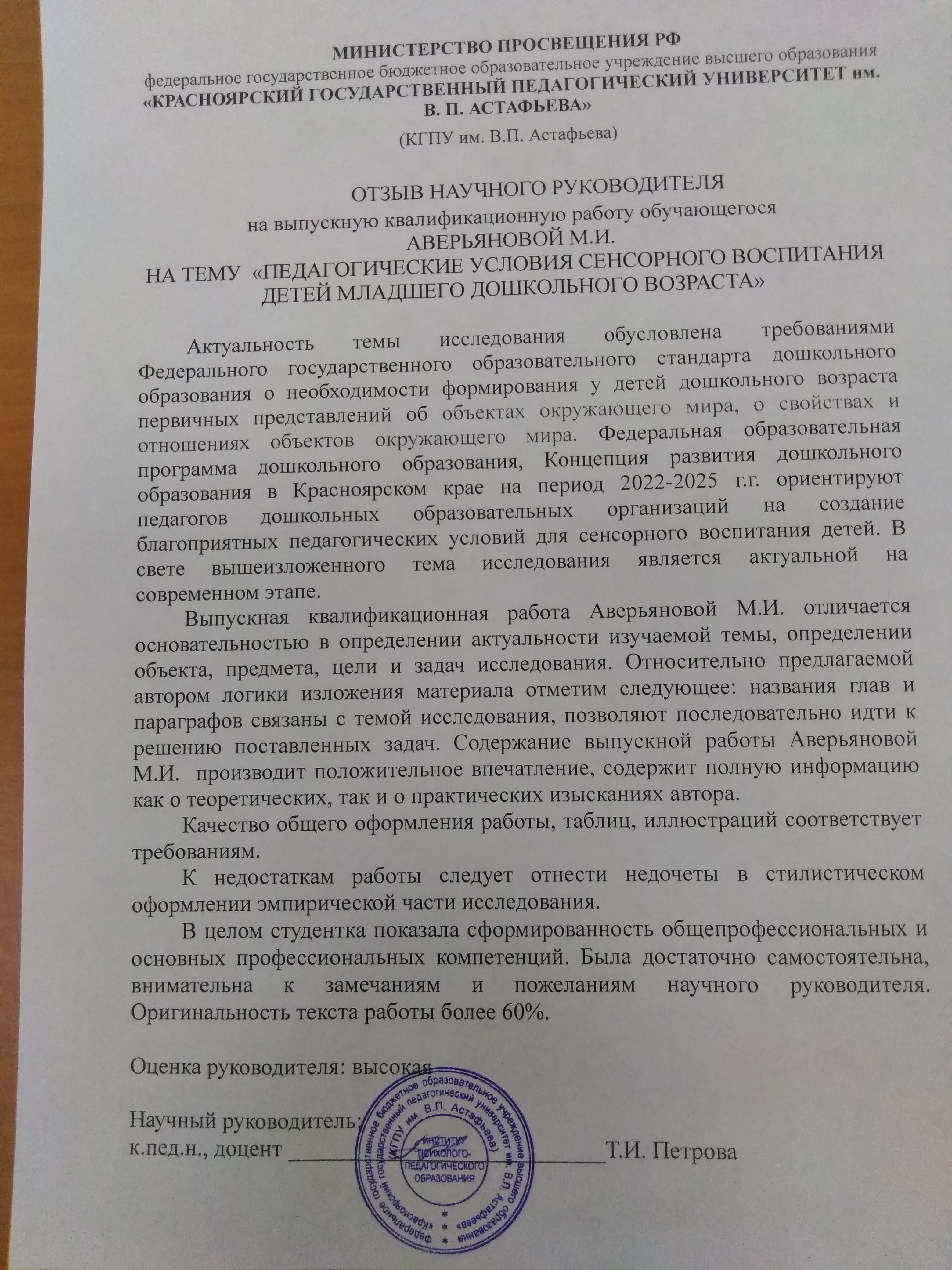 Аверьянова М.И. ПЕДАГОГИЧЕСКИЕ УСЛОВИЯ СЕНСОРНОГО ВОСПИТАНИЯ ДЕТЕЙ МЛАДШЕГО ДОШКОЛЬНОГО ВОЗРАСТА