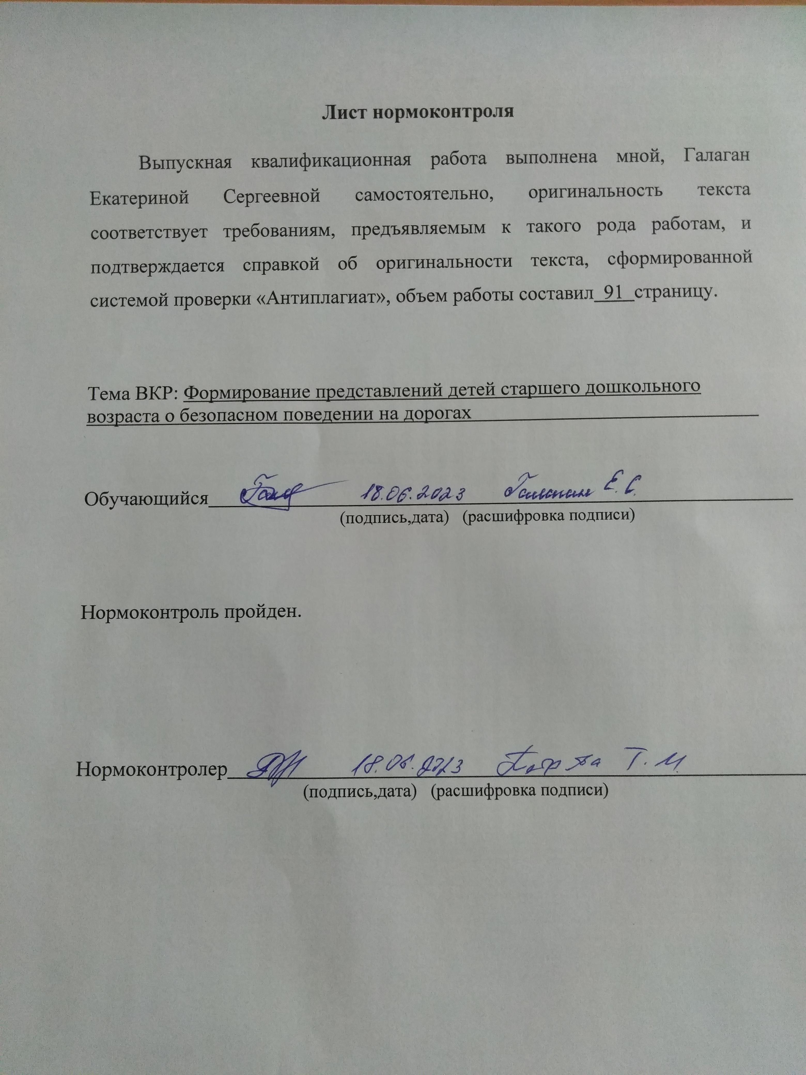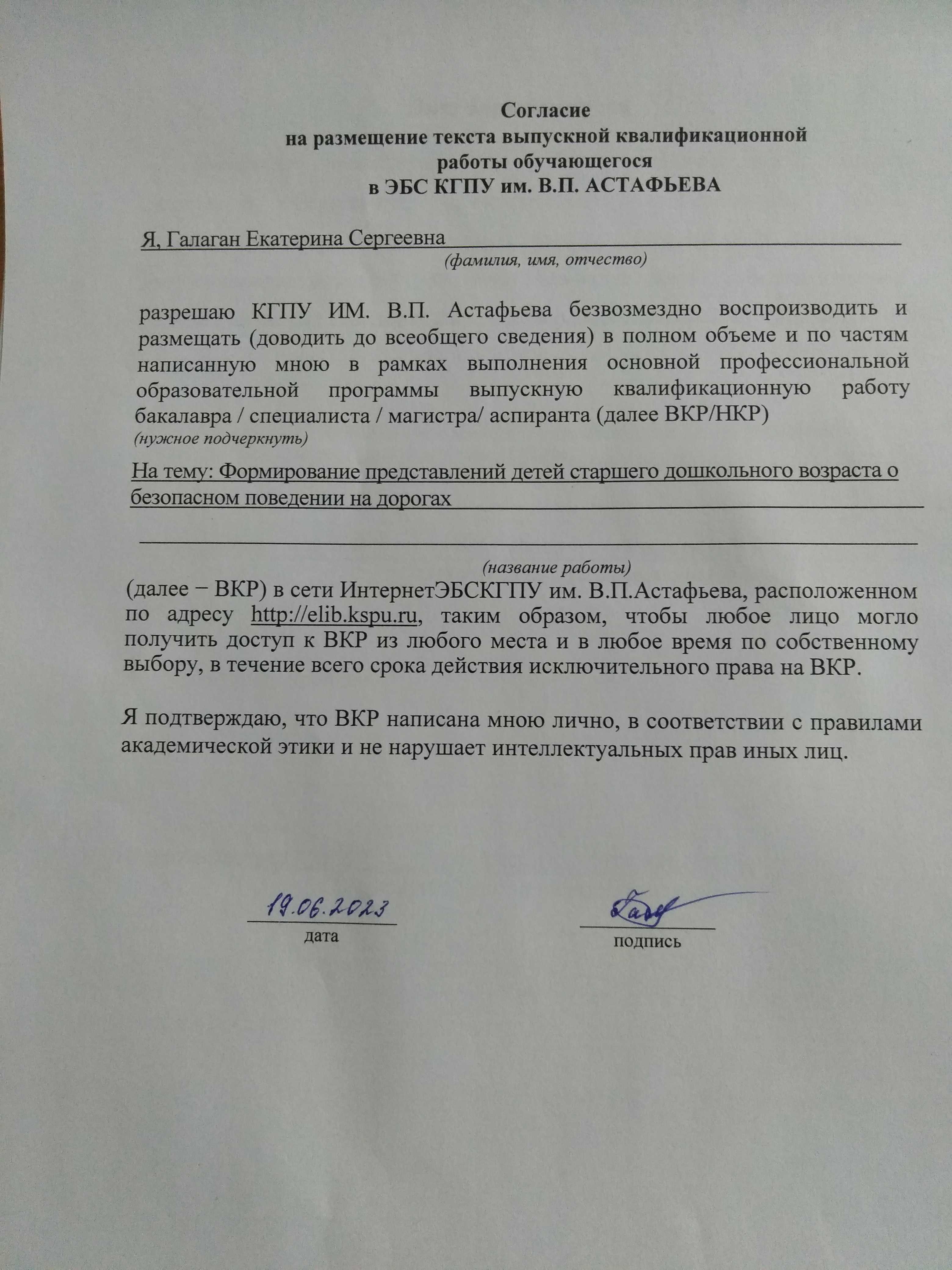 Галаган Е.С. ФОРМИРОВАНИЕ ПРЕДСТАВЛЕНИЙ ДЕТЕЙ СТАРШЕГО ДОШКОЛЬНОГО ВОЗРАСТА О БЕЗОПАСНОМ ПОВЕДЕНИИ НА ДОРОГАХ