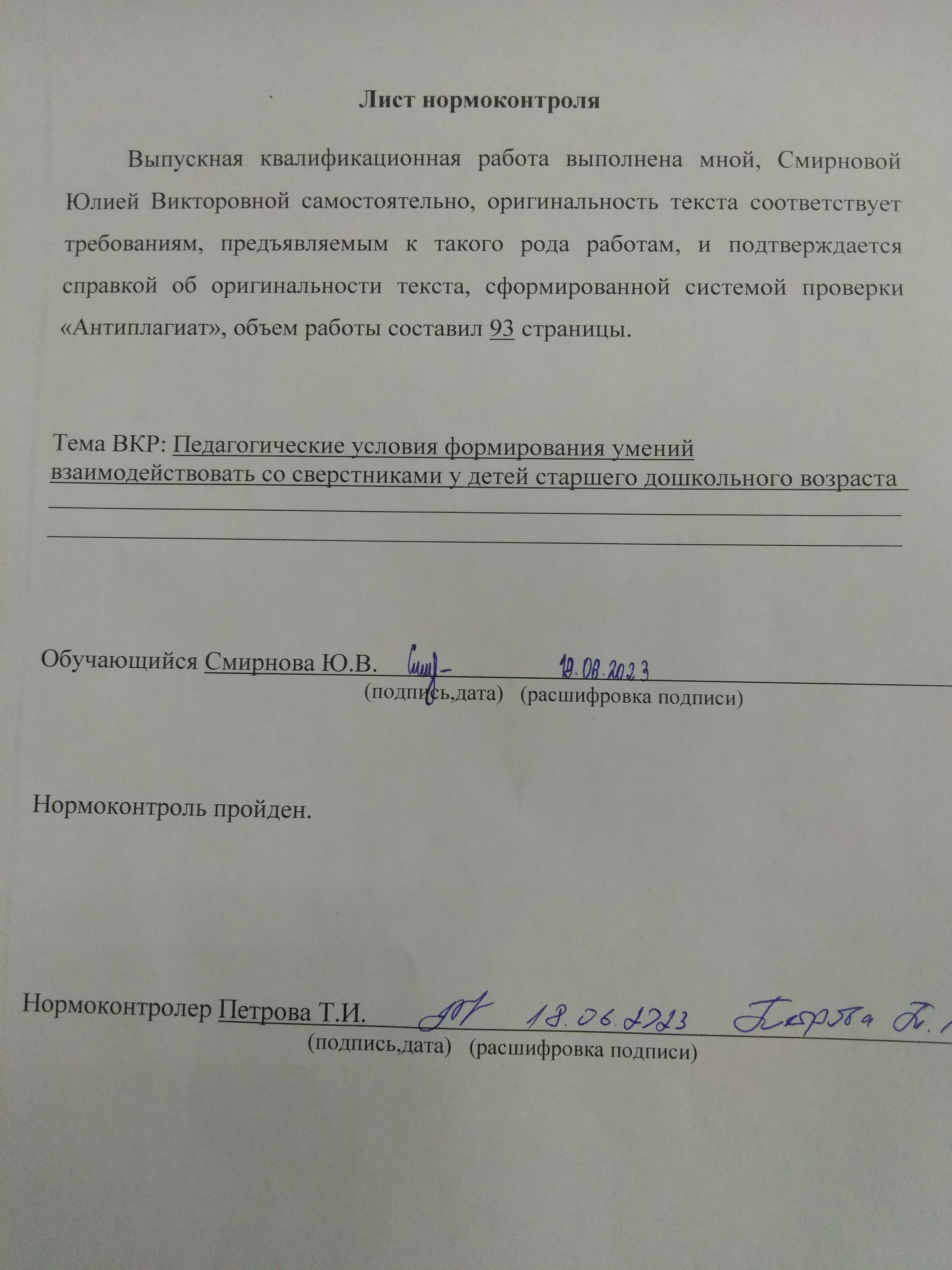 Смирнова Ю.В. ПЕДАГОГИЧЕСКИЕ УСЛОВИЯ ФОРМИРОВАНИЯ УМЕНИЙ ВЗАИМОДЕЙСТВОВАТЬ СО СВЕРСТНИКАМИ У ДЕТЕЙ СТАРШЕГО ДОШКОЛЬНОГО ВОЗРАСТА
