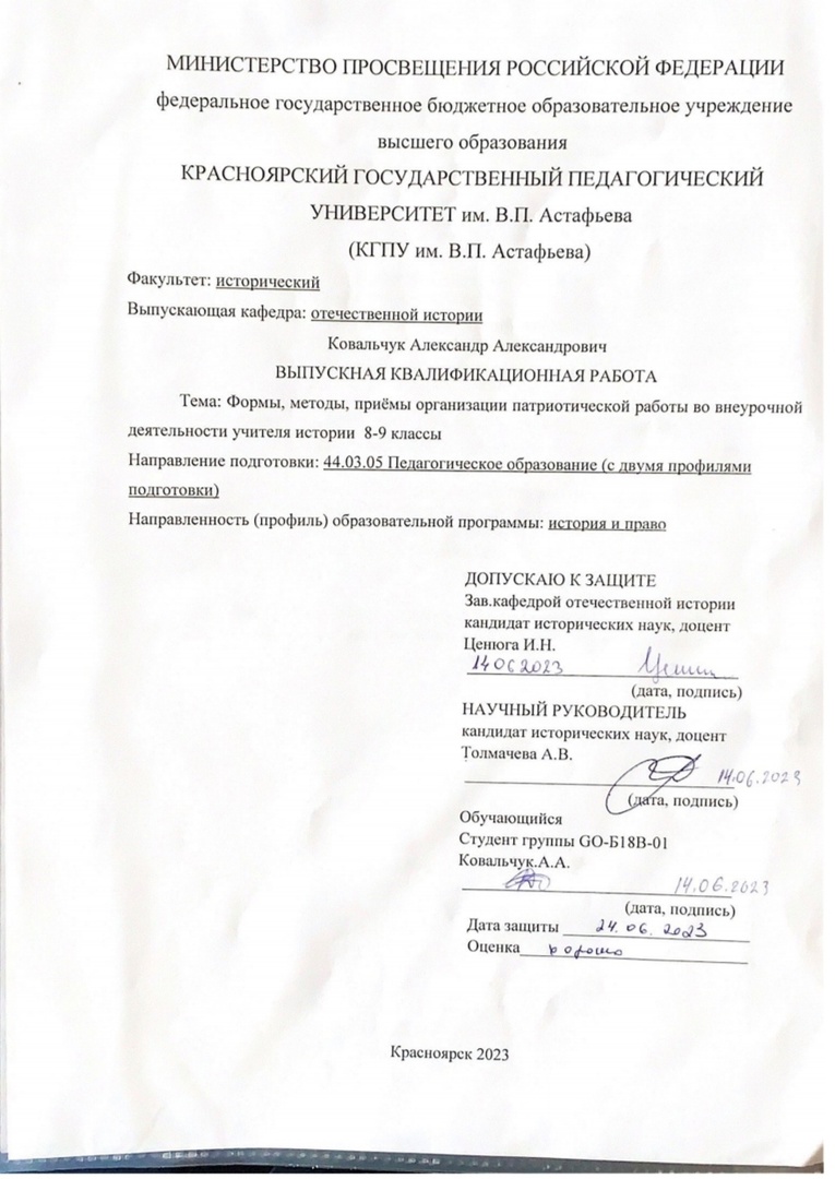 Формы, методы, приёмы организации патриотической работы во внеурочной деятельности учителя истории 8-9 классы