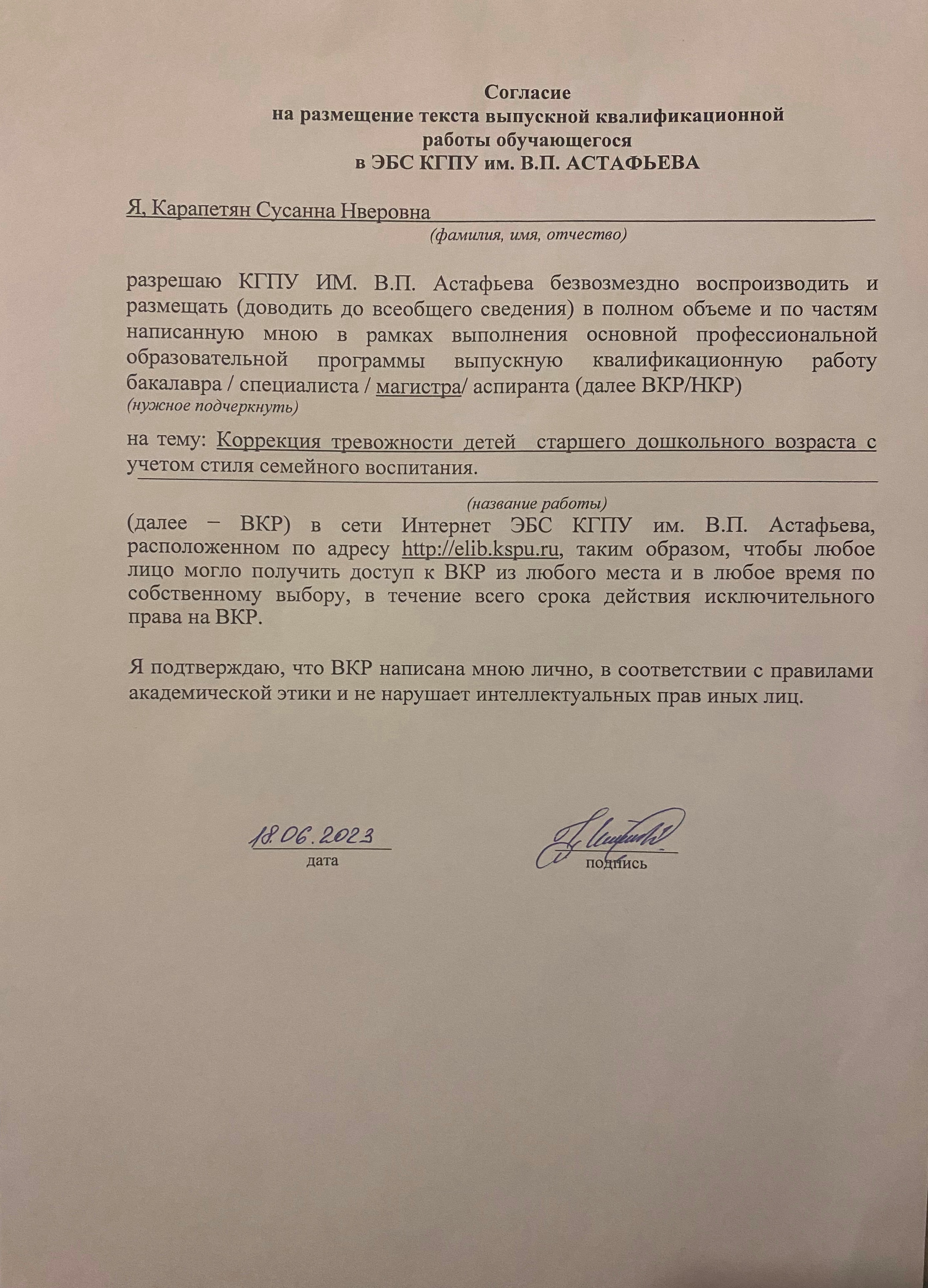 Карапетян С.Н. Коррекция тревожности детей старшего дошкольного возраста с учетом стиля семейного воспитания