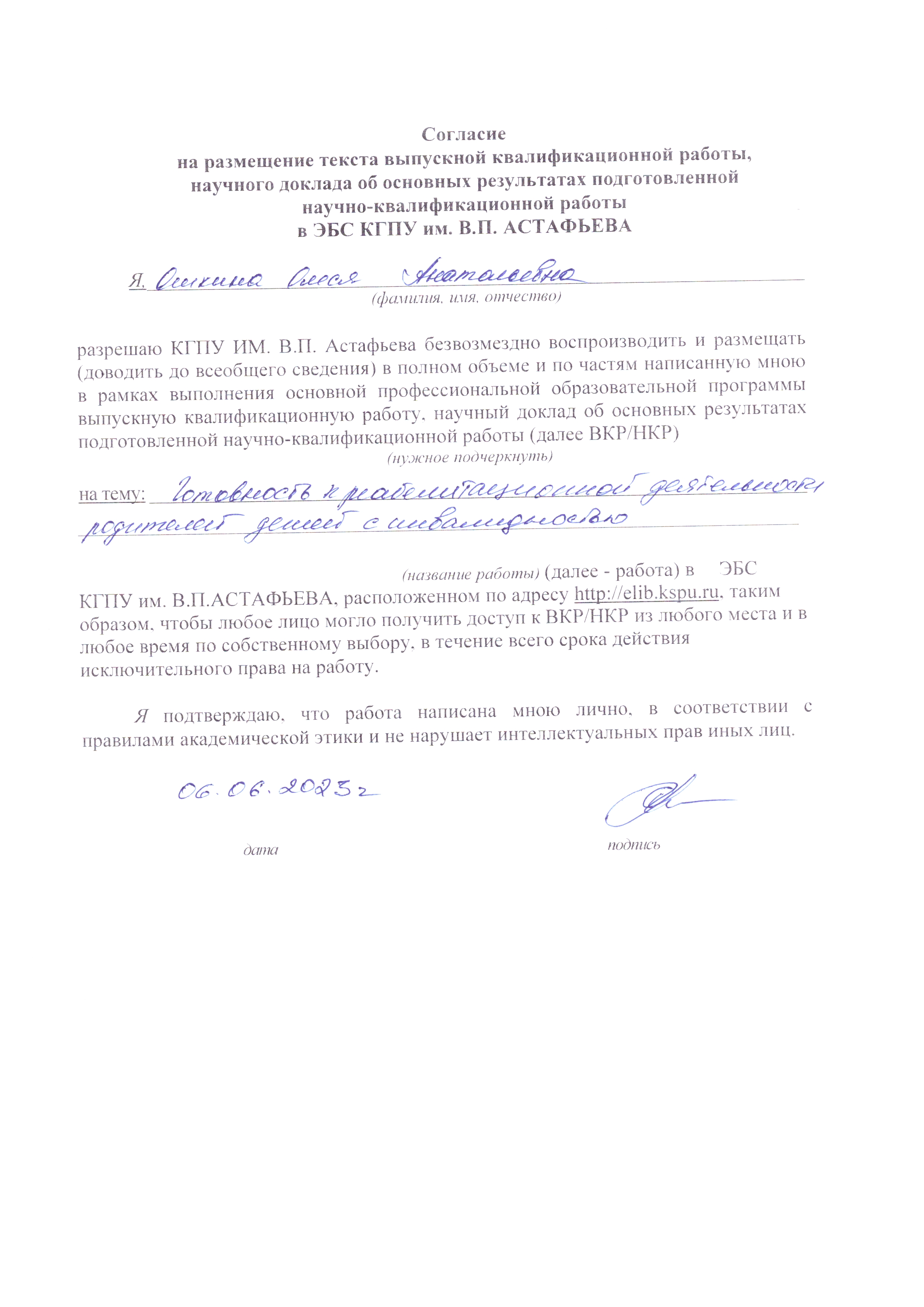 Ошкина Олеся Анатольевна Готовность к реабилитационной деятельности родителей детей с инвалидностью