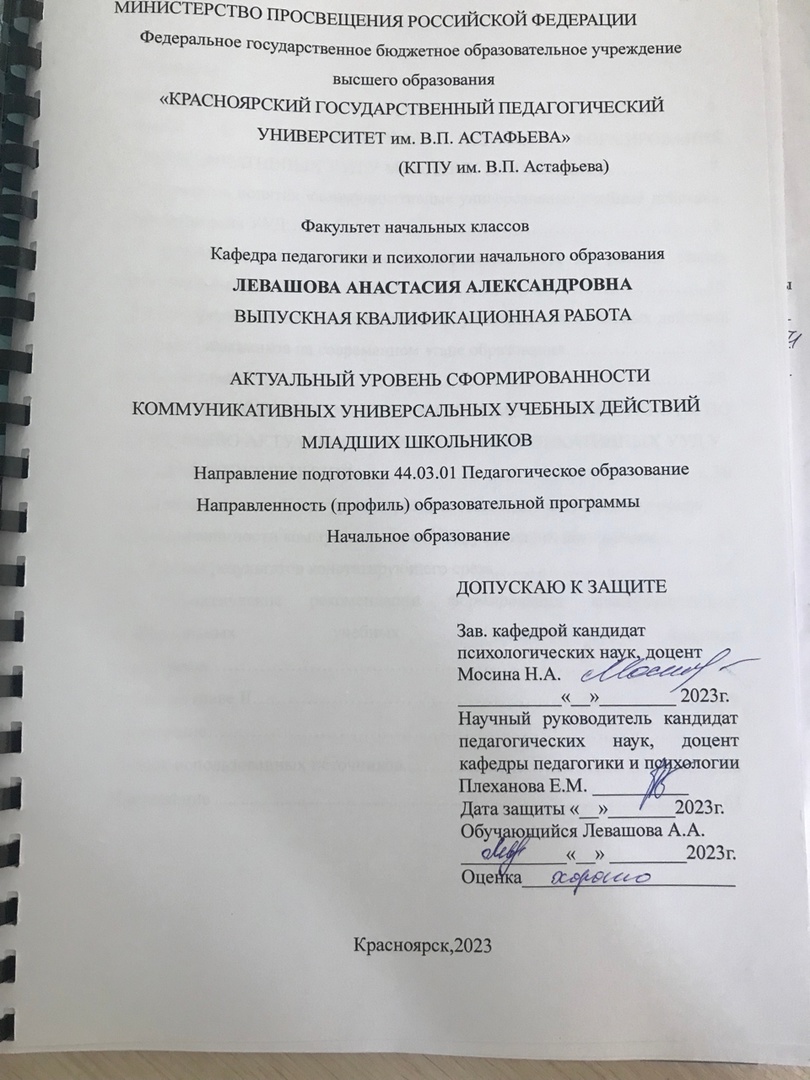 Актуальный уровень сформированности коммуникативных универсальных учебных действий младших школьников