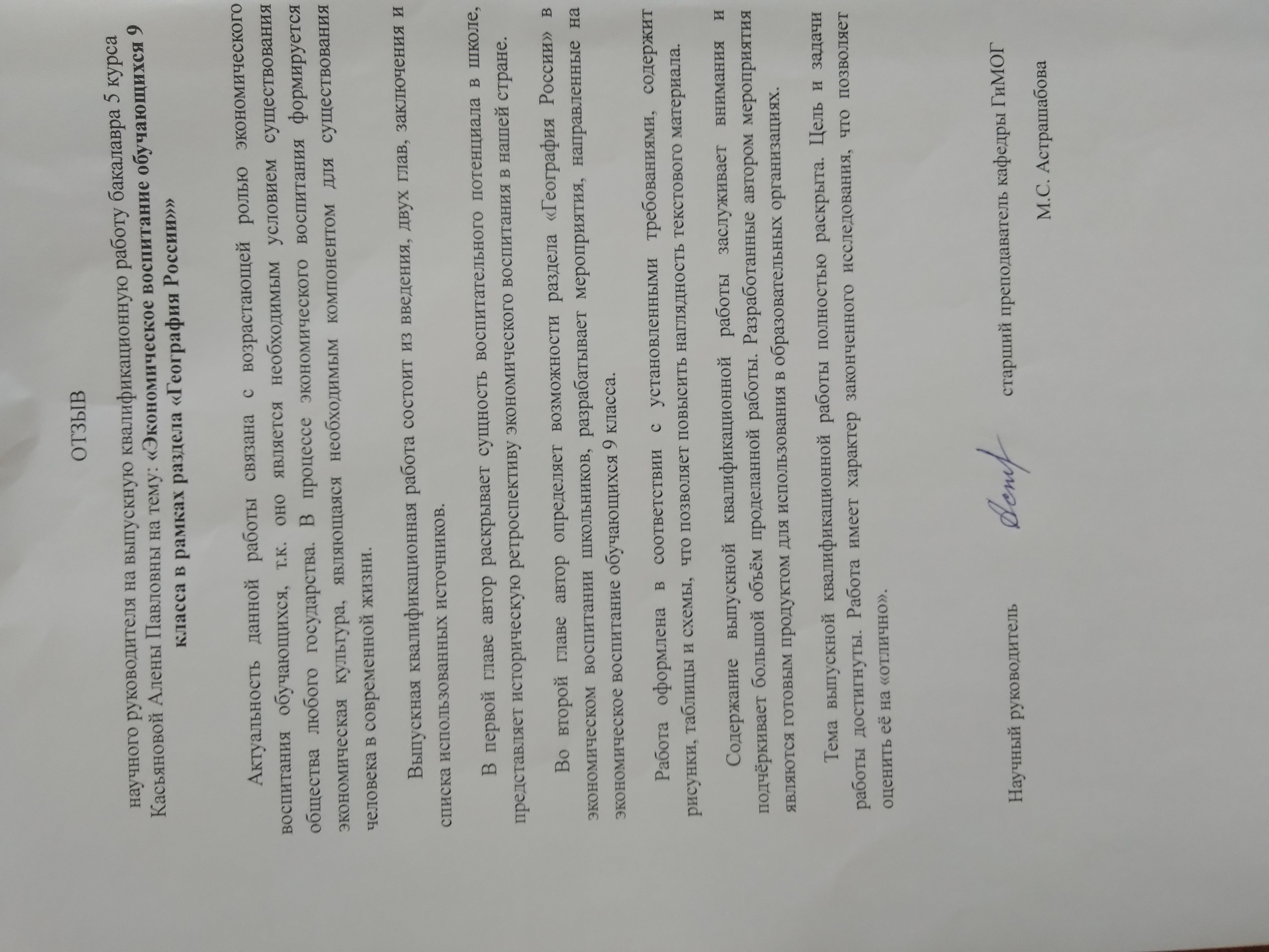 Экономическое воспитание обучающихся 9 класса в рамках раздела "География России"