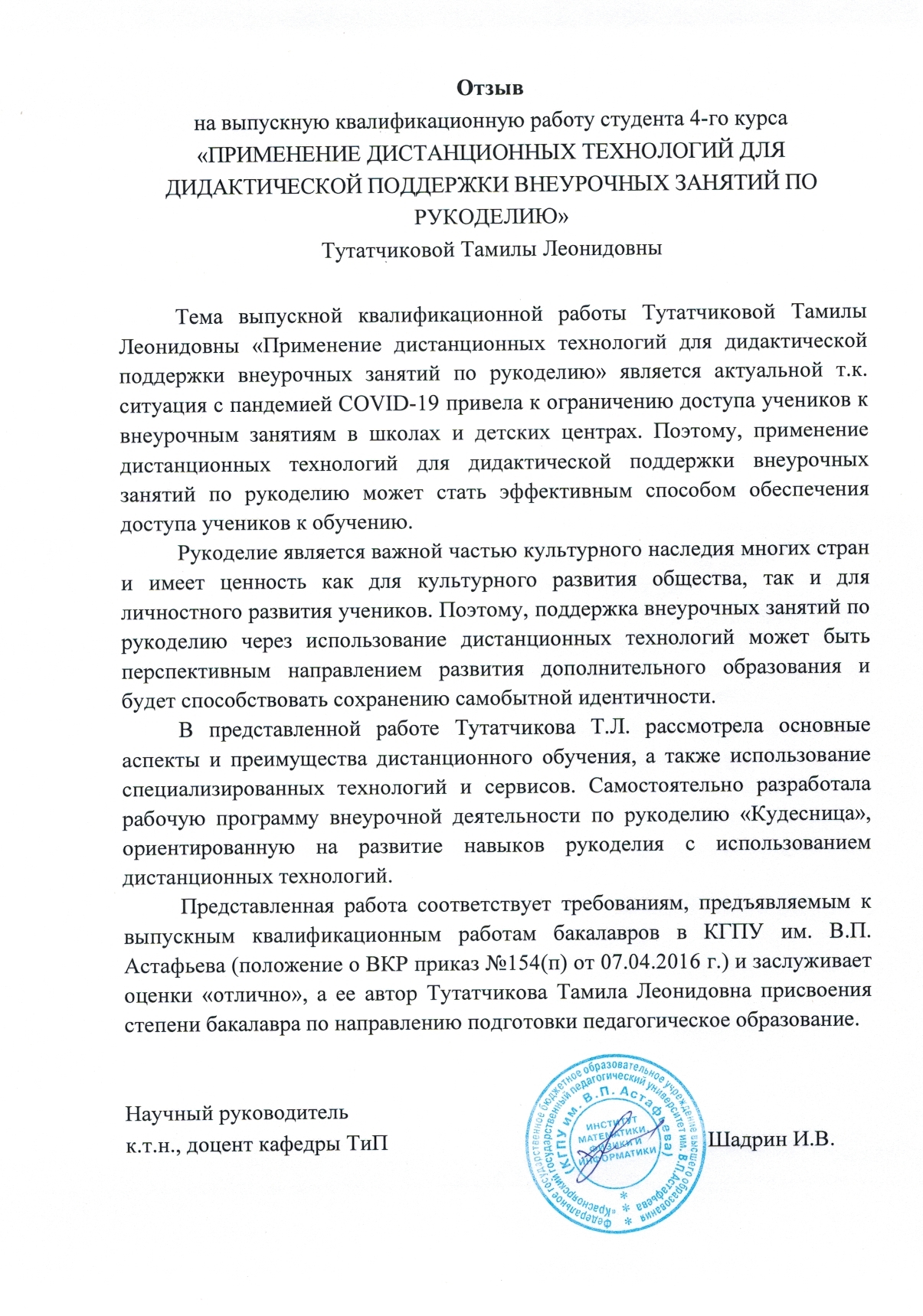 Применение дистанционных технологий для дидактической поддержки внеурочных занятий по рукоделию