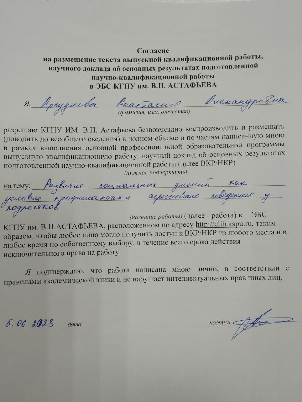 Развитие социальных умений как условие профилактики агрессивного поведения подростков