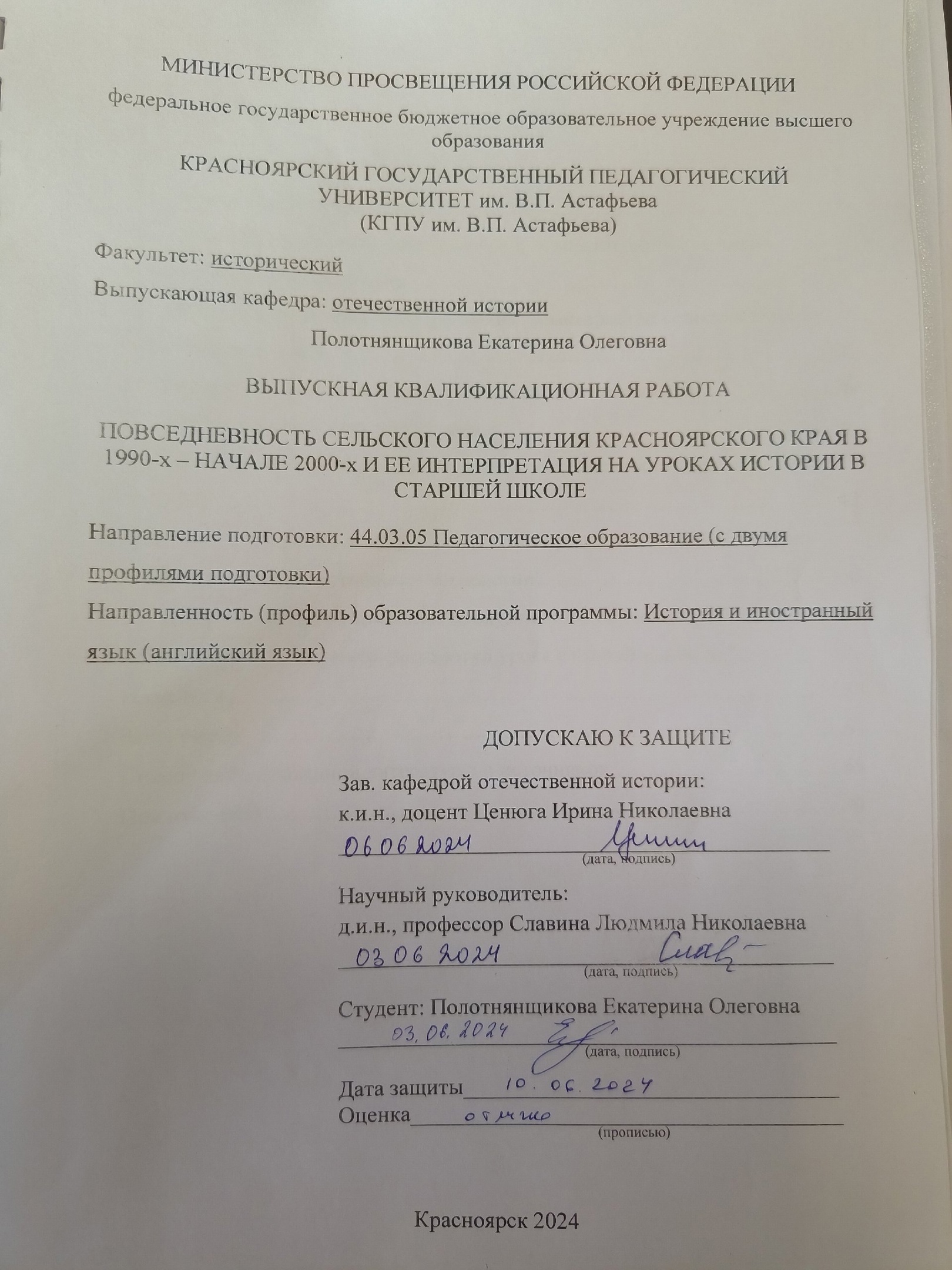 Повседневность сельского населения Красноярского края в 1990-х - начале 2000-х гг. и ее интерпретация на уроках истории в старшей школе