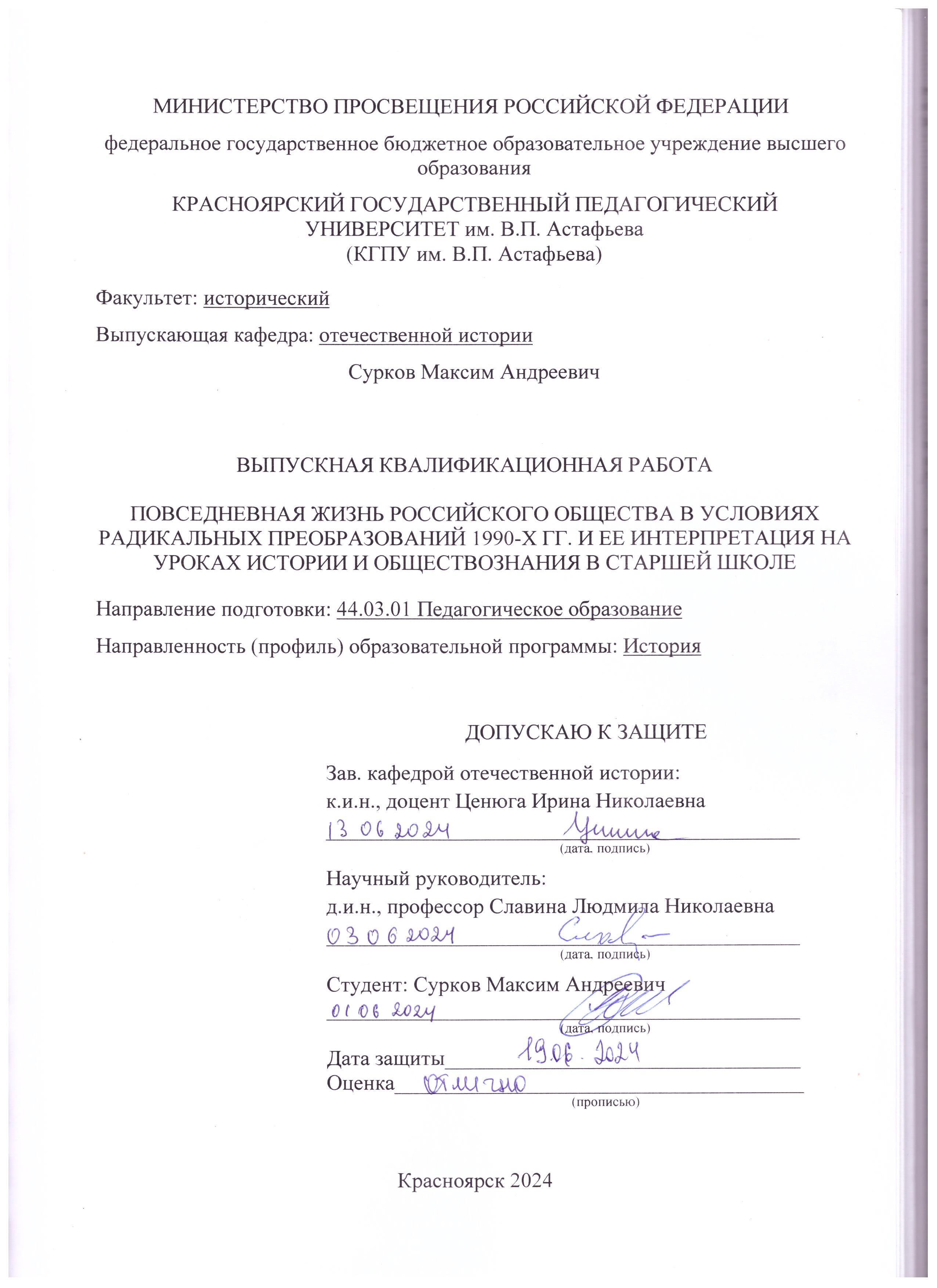 Повседневная жизнь российского общества в условиях радикальных преобразований 1990-х гг. и ее интерпретация на уроках истории и обществознания в старшей школе