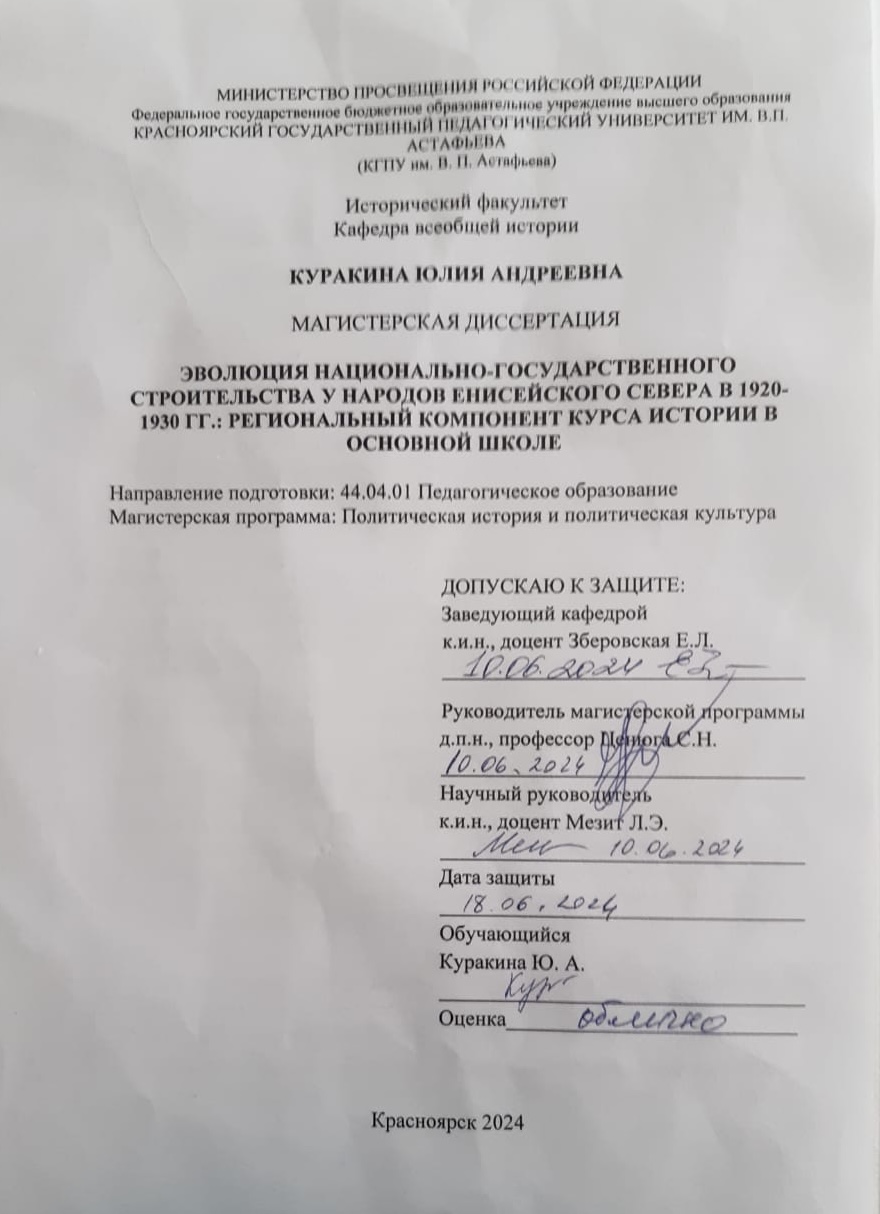«Эволюция национально-государственного строительства у коренных малочисленных народов Енисейского Севера в 1920-1930 гг.: региональный компонент курса истории в школе»
